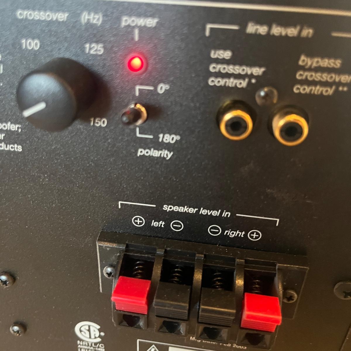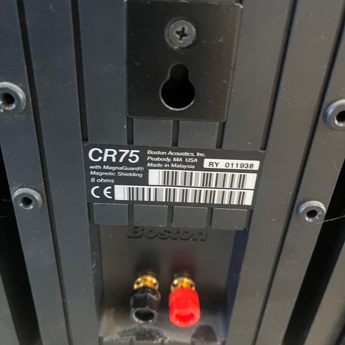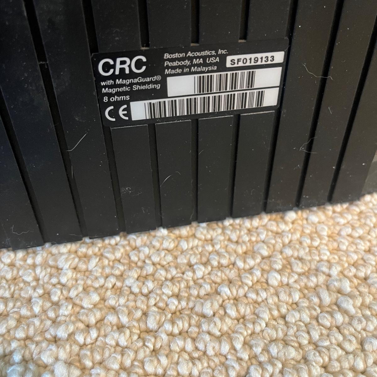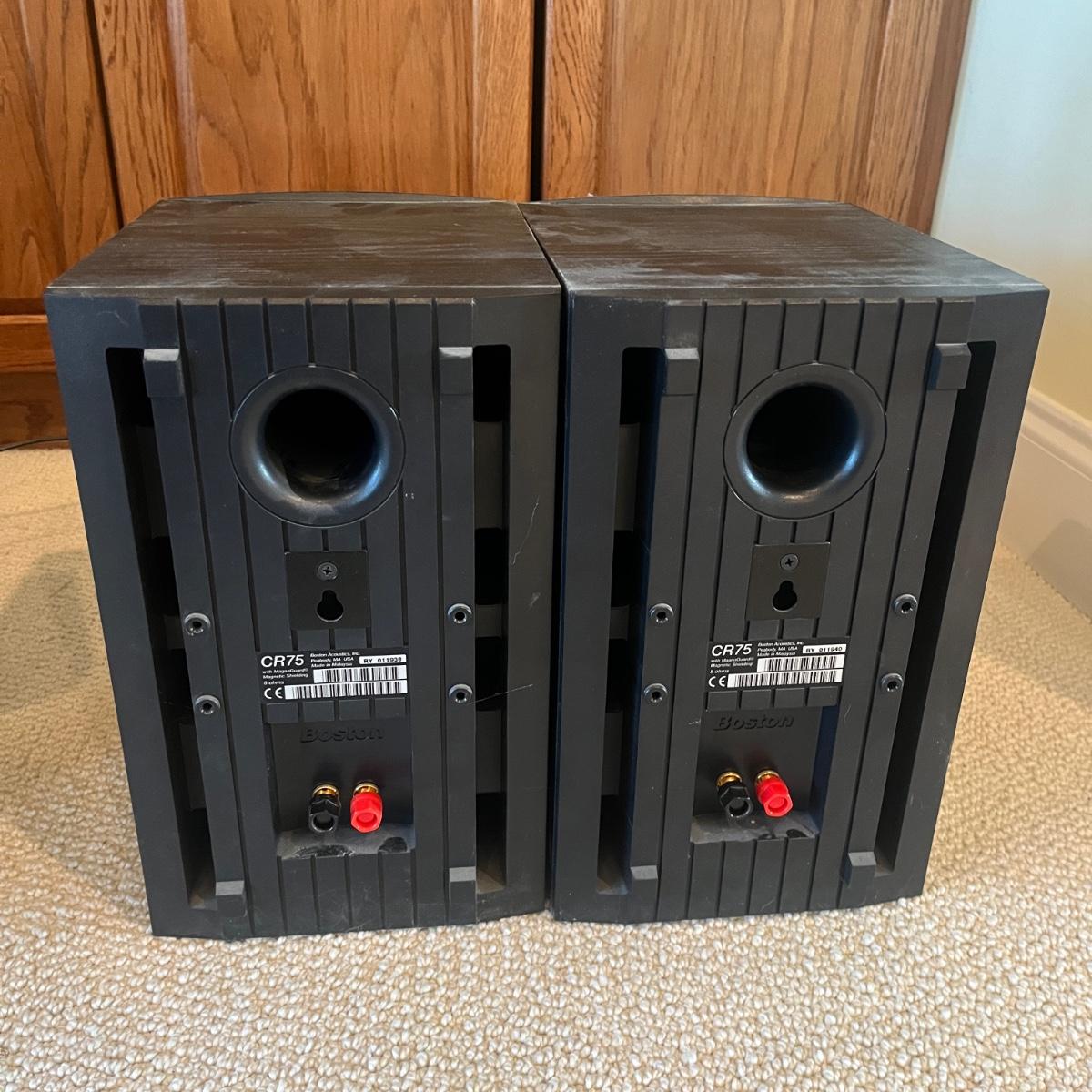 Lot includes a Boston powered sub woofer, two Boston bookshelf speakers and a Boston center speaker. Sub woofer measures 12” x 16” x 16”H and powered on when plugged in. Sub woofer has broken speaker, see pictures.