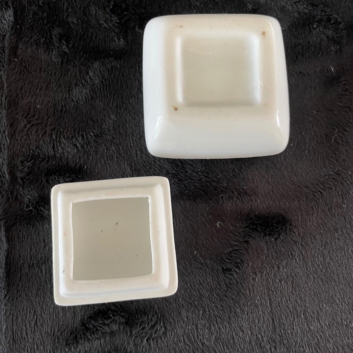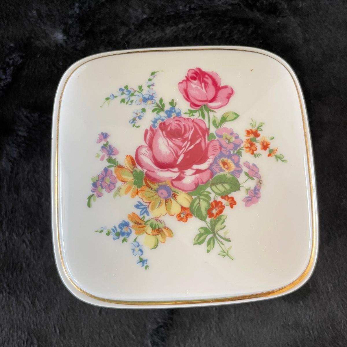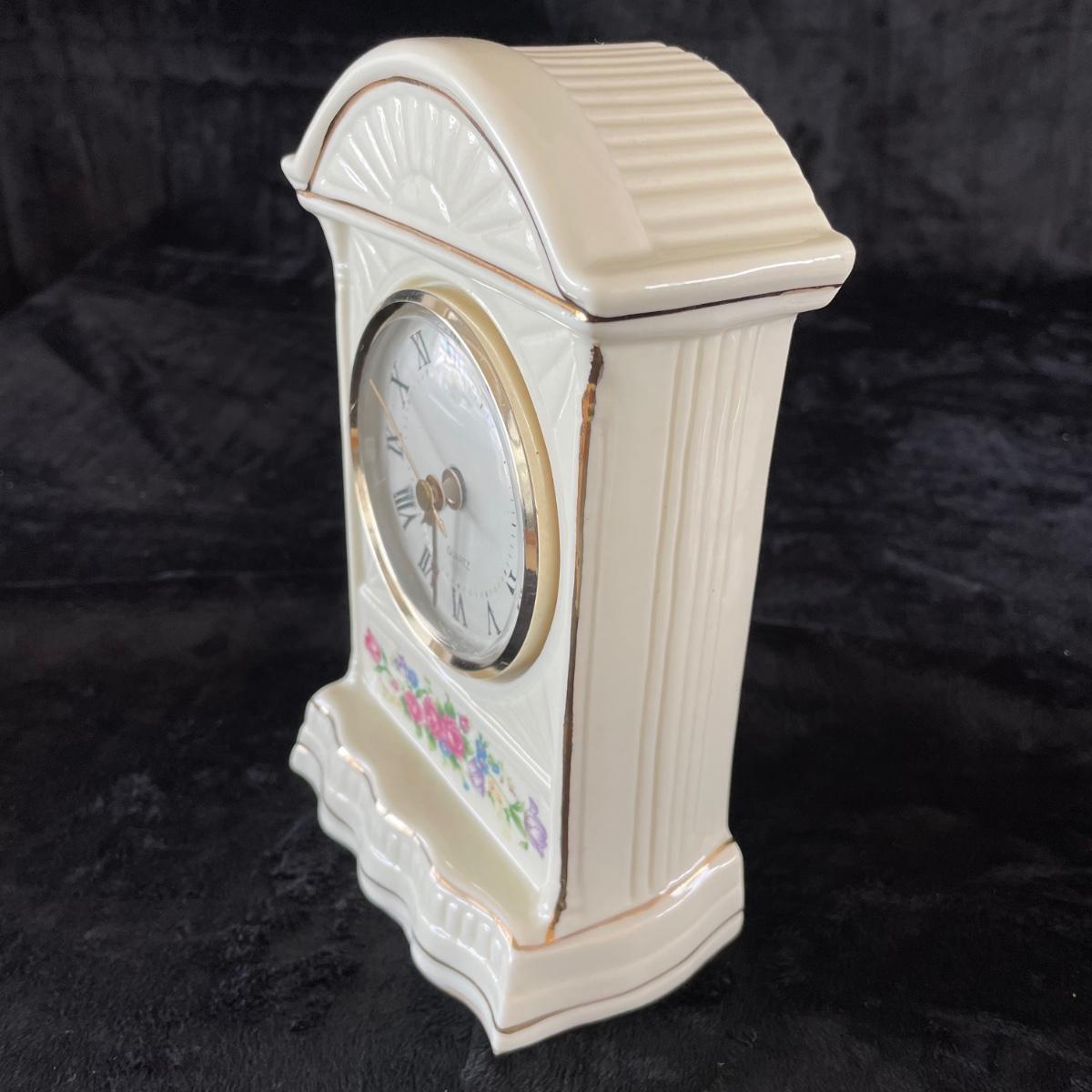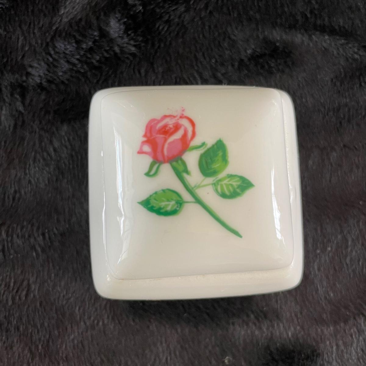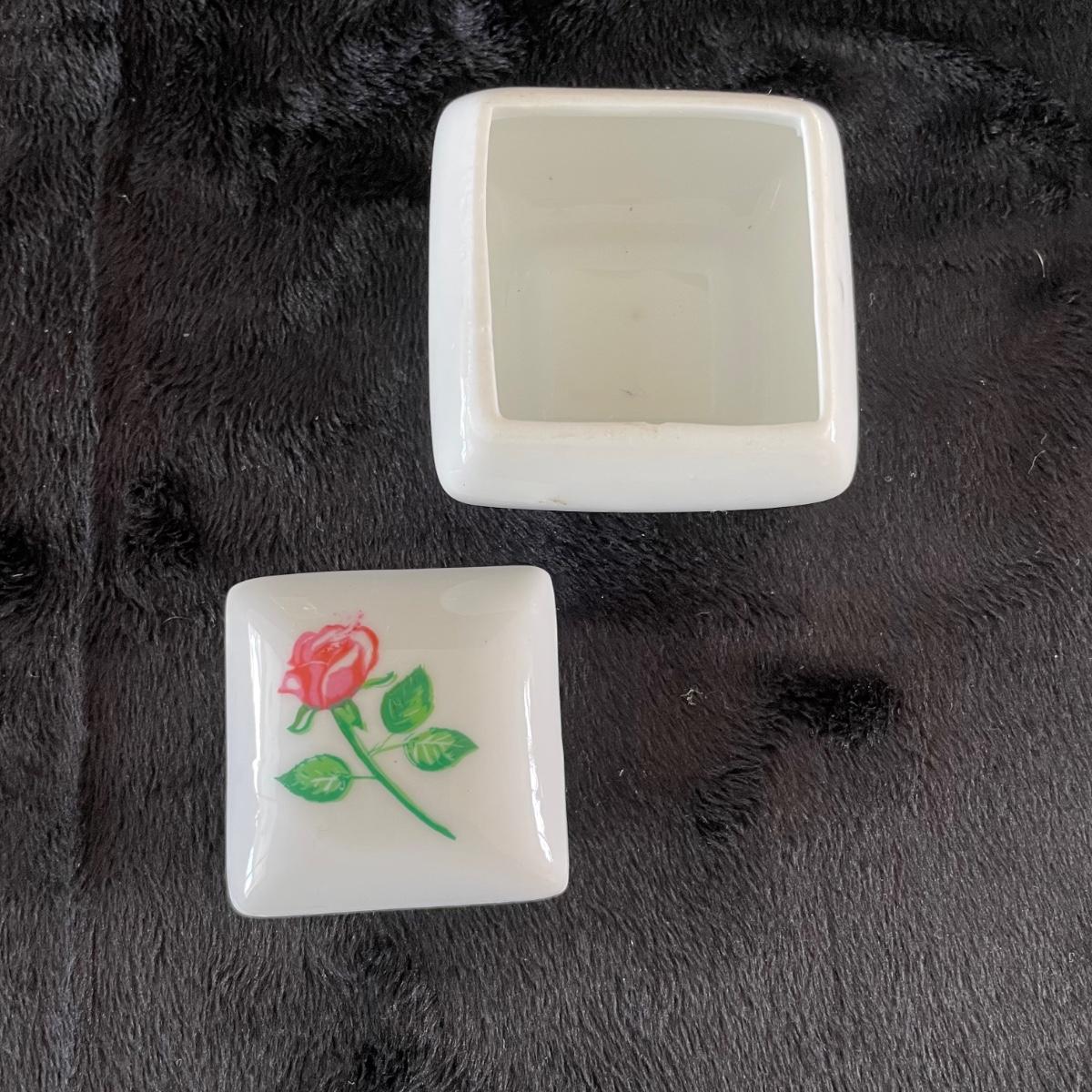 Nativity Scene plays “ “ Porcelain quartz clock with gold trim & floral motif meas.5”w x 7.5”h. Larger trinket box meas. 3.5”x3.5”x2”h. No chipping. (D-JM)