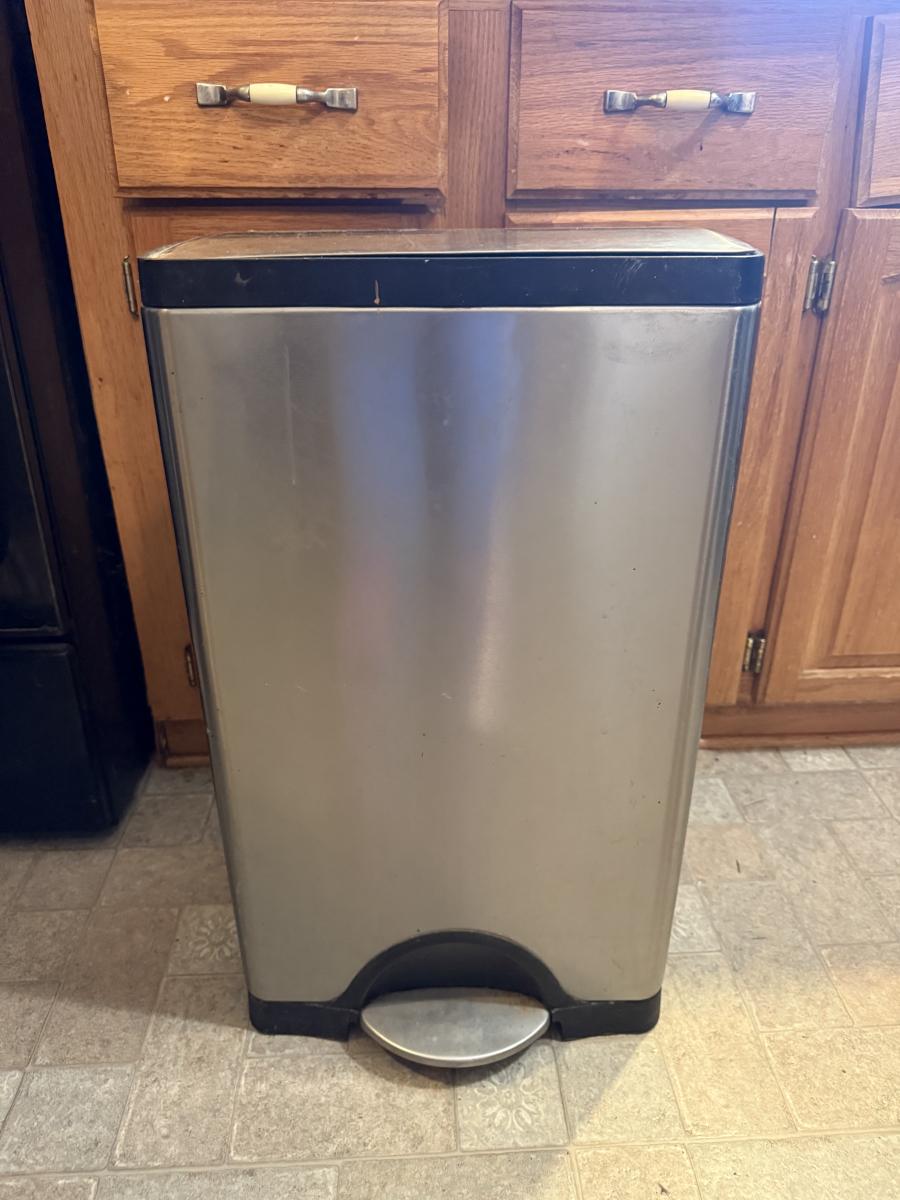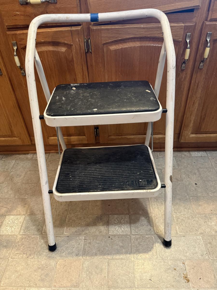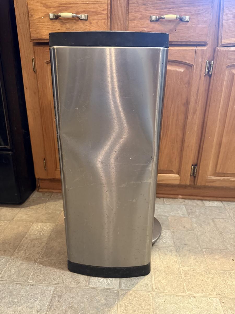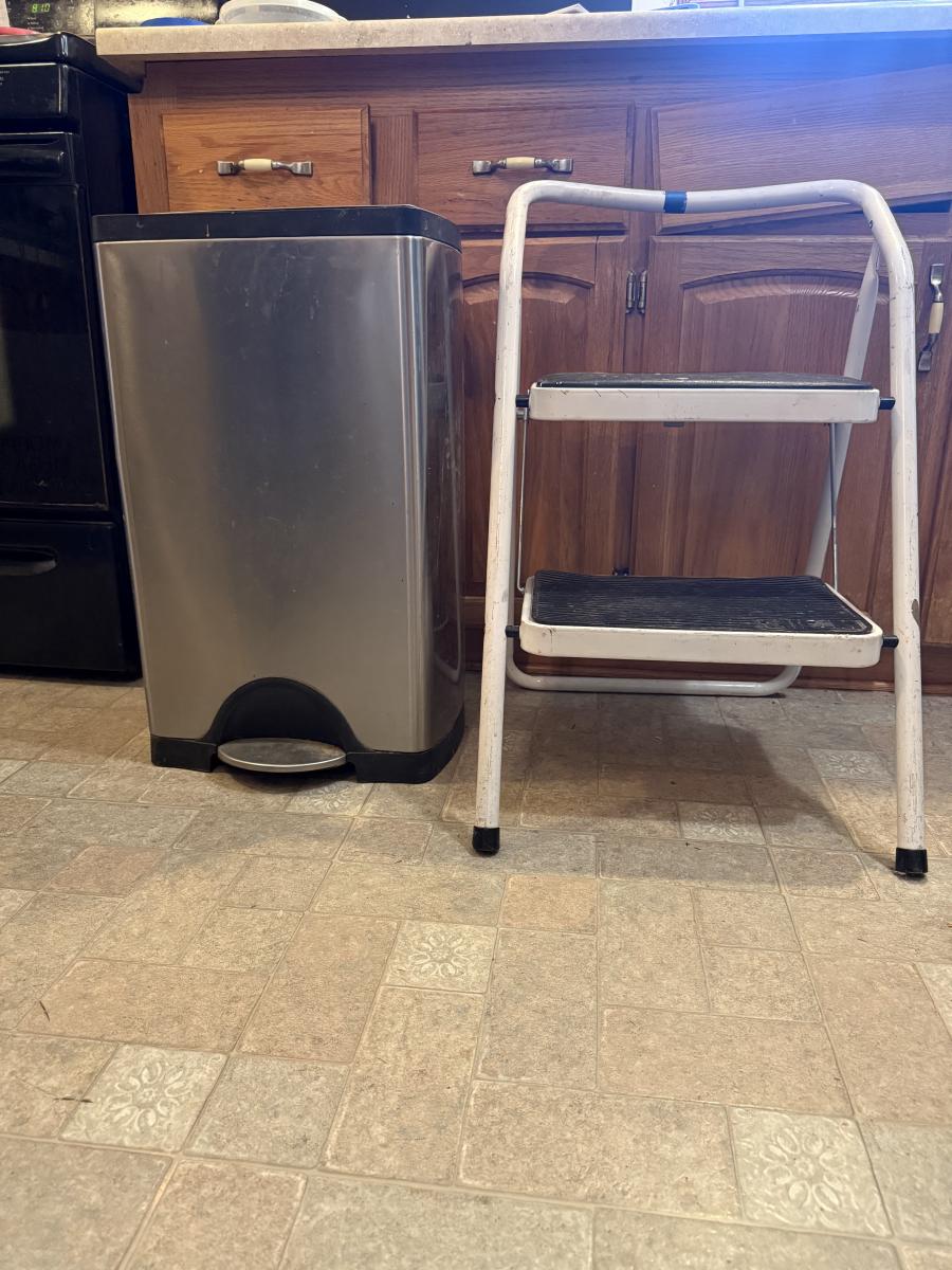 Folding Step Ladder and trash can, a little bit, dinged up on one side