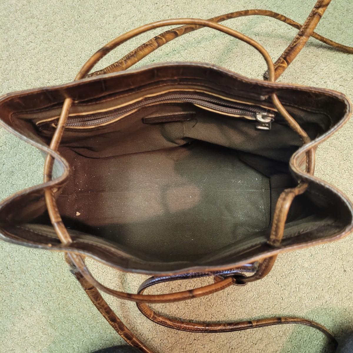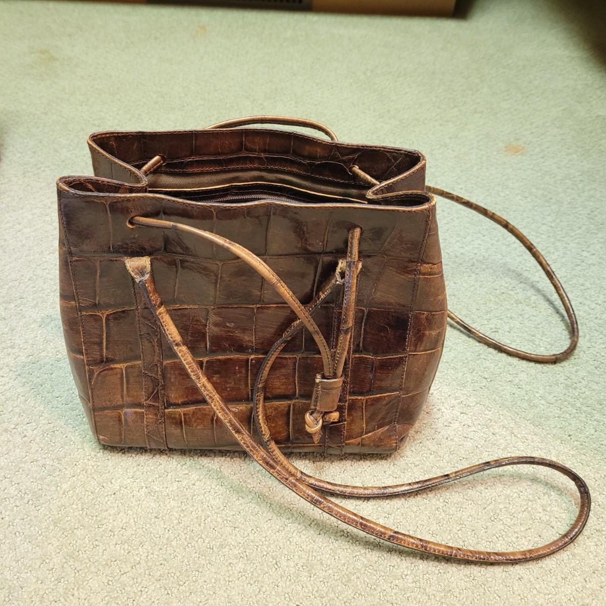 This lot of four small handbags includes Bottega Veneta of Italy, Salvatore Ferragamo, O’Dea, and a Sondra Roberts bag which appears to be snakeskin. Sondra Roberts bag measures approximately 8.5” x 4” x 9”H. Brown leather drawstring Joan and David bag measures 9” x 3” x 10” Shipping available.