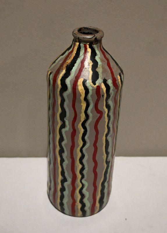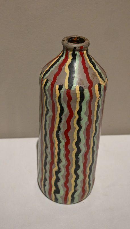 A painted bottle by Michigan artist Albert “‹“Kid” Mertz. Mixed media. Approx. 2.5" x 2.5" x 7.5". Please note, the paint on Mertz bottles often flakes, as photographed. Edie B Estate Sales is not responsible for additional flaking during shipment.