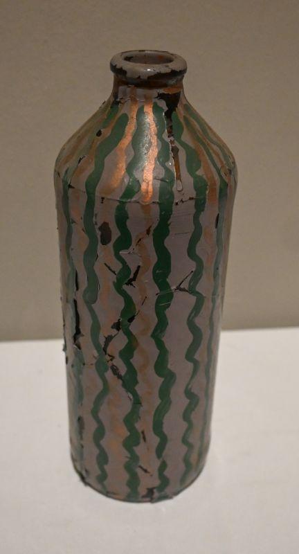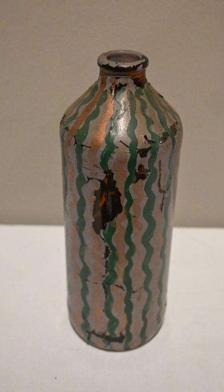 A painted bottle by Michigan artist Albert “‹“Kid” Mertz. Mixed media. Approx. 2.5" x 2.5" x 7.5". Please note, the paint on Mertz bottles often flakes, as photographed. Edie B Estate Sales is not responsible for additional flaking during shipment.