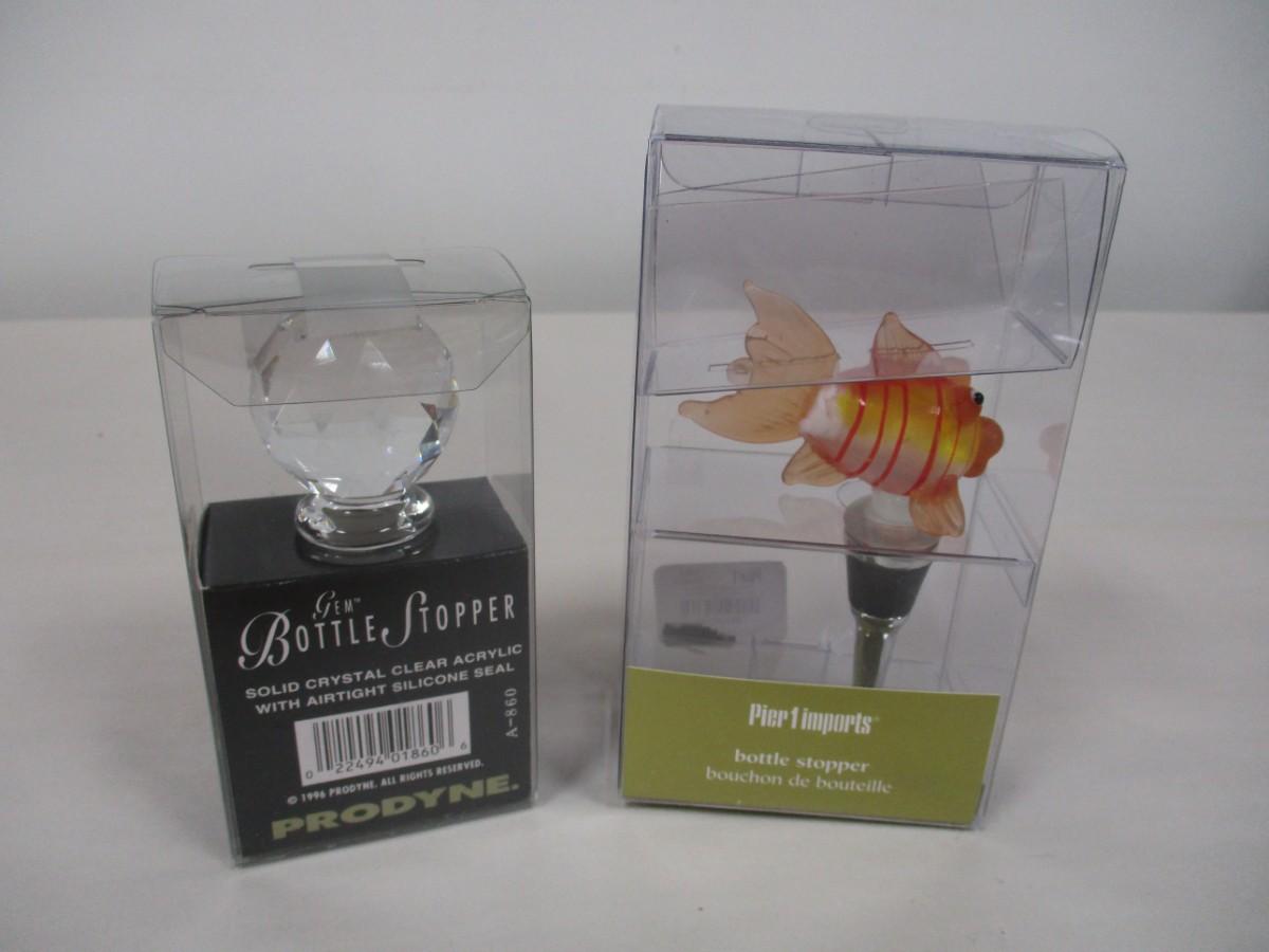Pair of Crystal Finial and Goldfish Finial Bottle Stoppers in Original Packaging