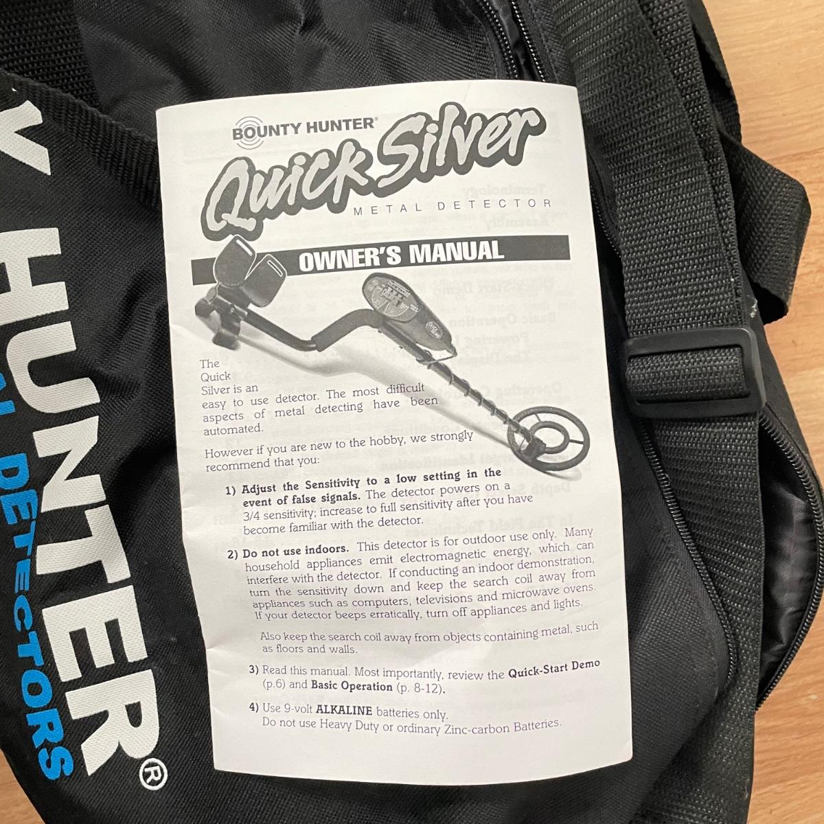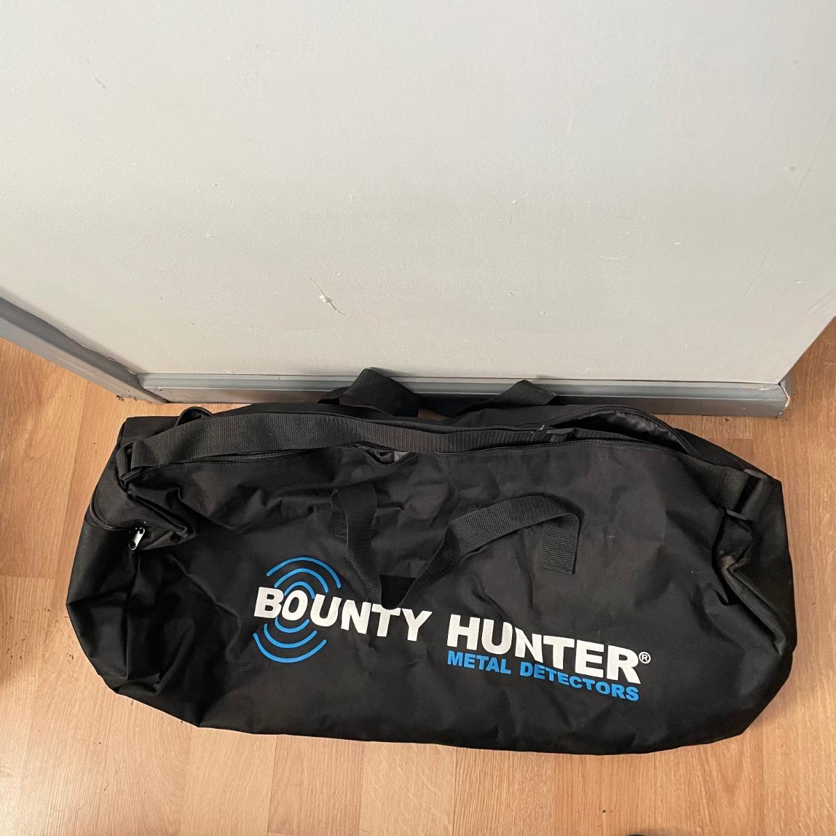 Lot includes a Bounty Hunter metal detector with 8” coil and a carrying bag. Unit was not tested as it has no batteries.