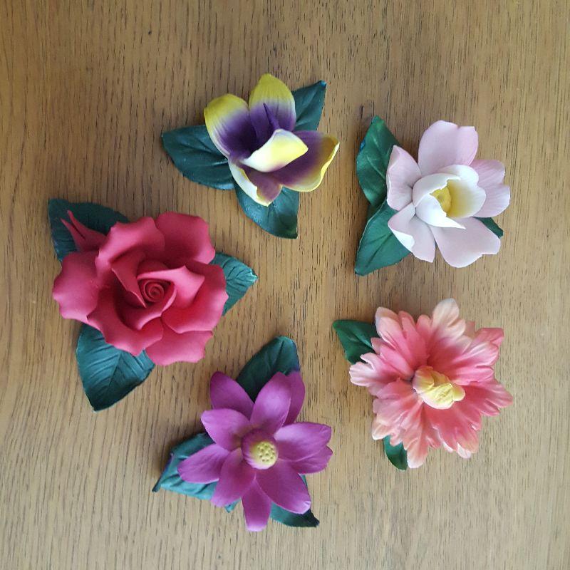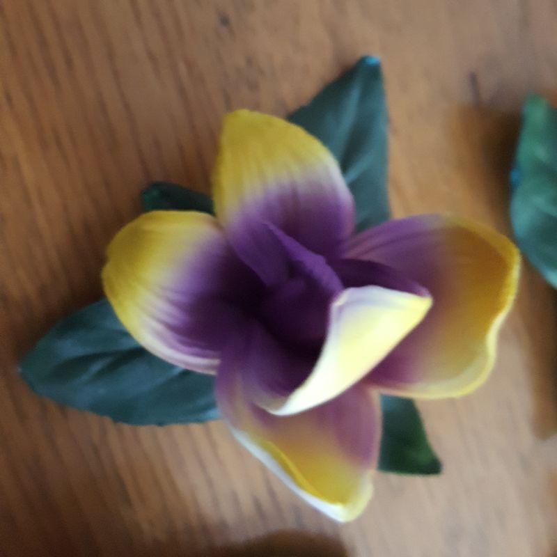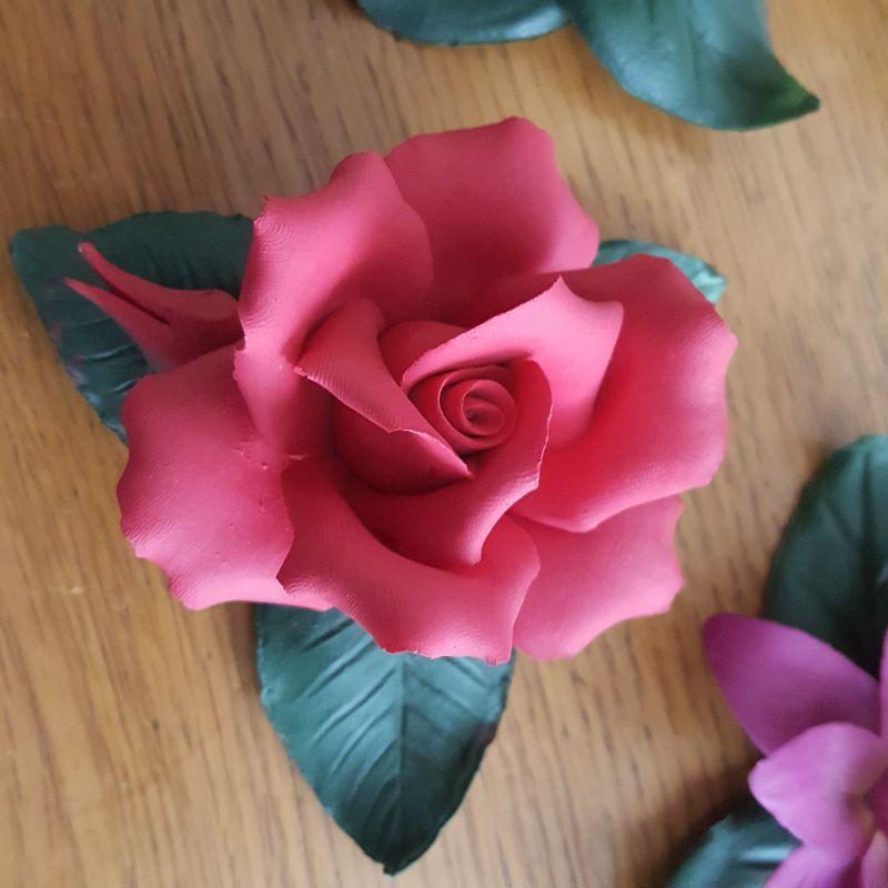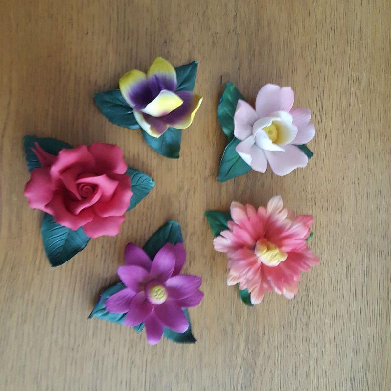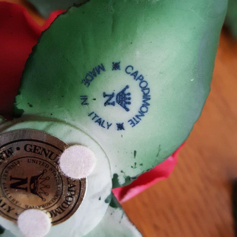 This auction lot is for a collection or a Bouquet of Capodimonte Flowers. This gathering of 5 different flowers are in very good condition for Capodimonte moldings. All of the flowers have the stamped imprinted marked on the bottom, the rose has the paper sticker. Minute chips and/or dings - some of which have be recolored, are minimal. Flowers measure about 4.5-inches each in diameter. A nice bouquet overall.