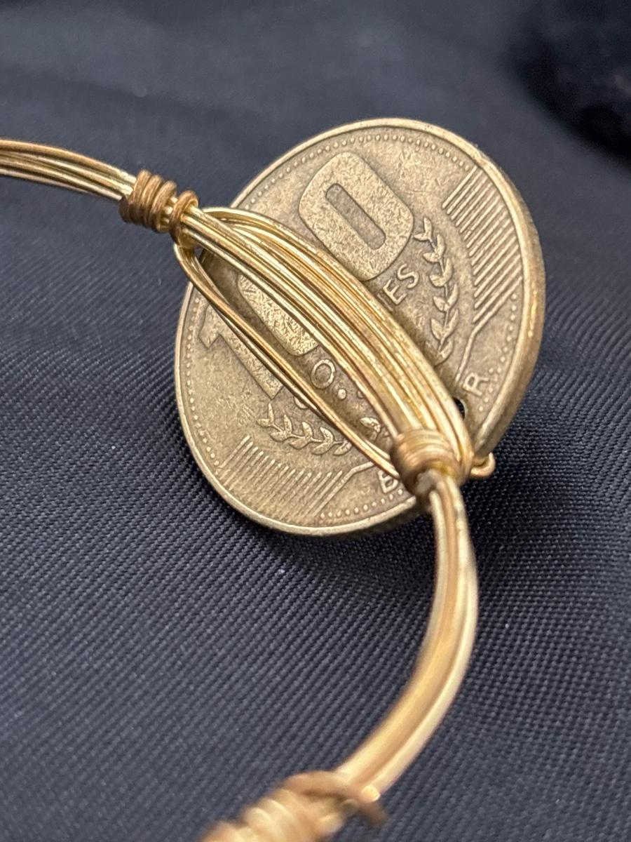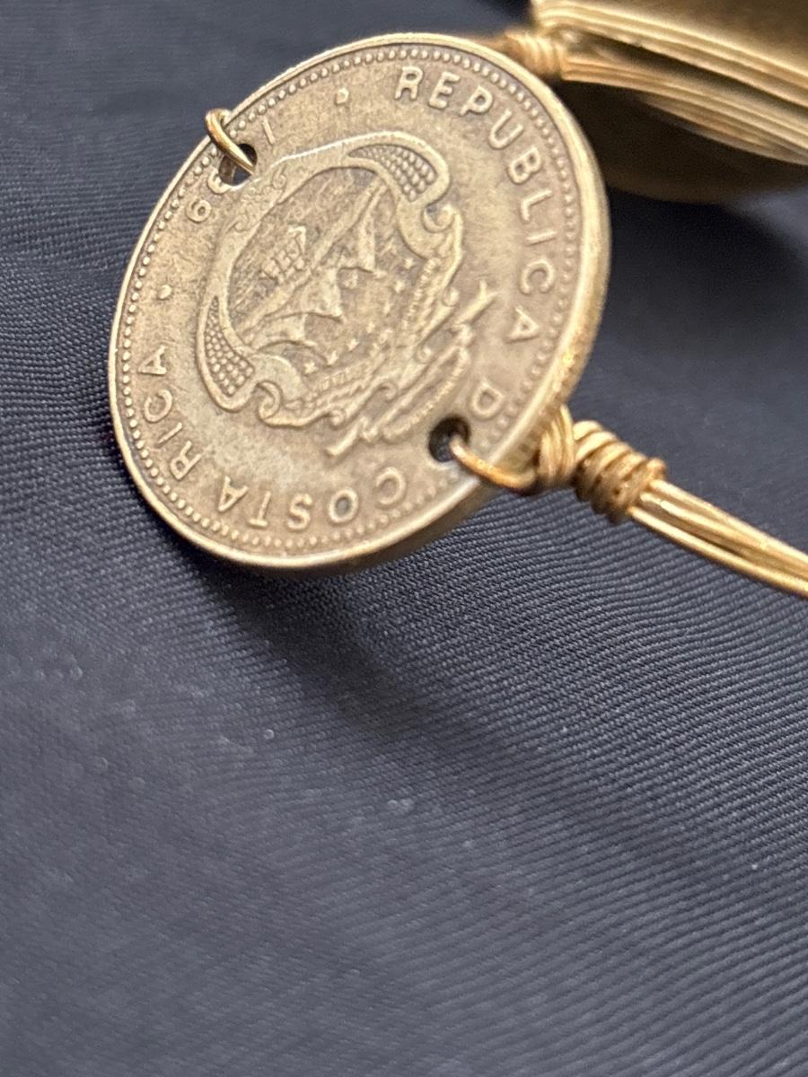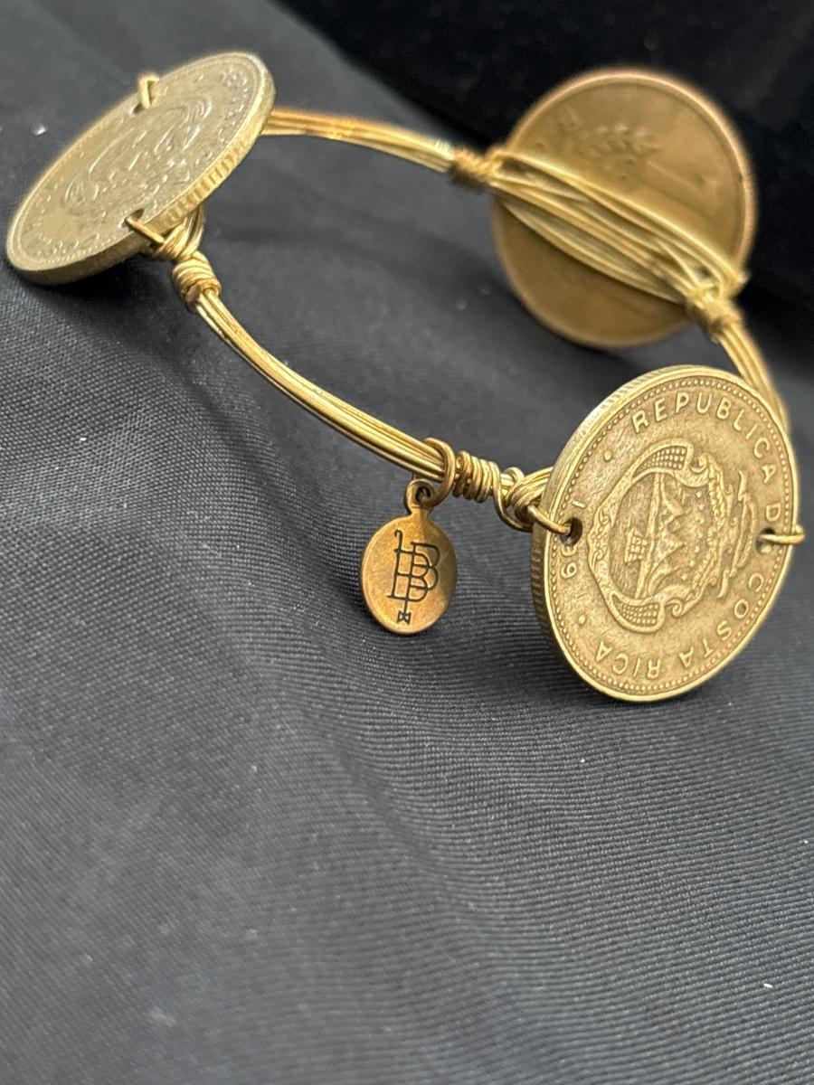 BOURBON & BOWETIES Handcrafted COIN Bangle Bracelet Costa Rica Colones Gold ToneBOURBON