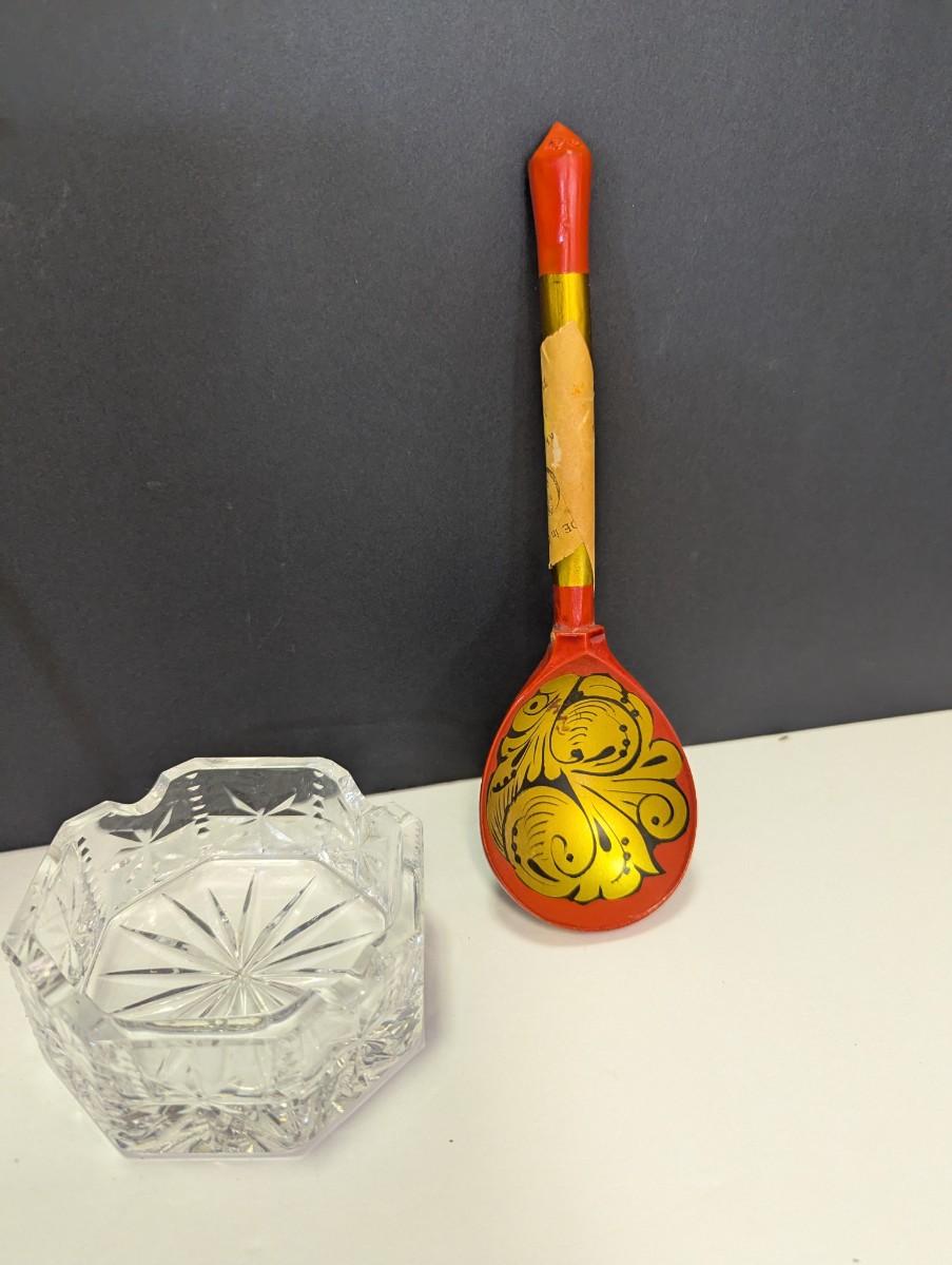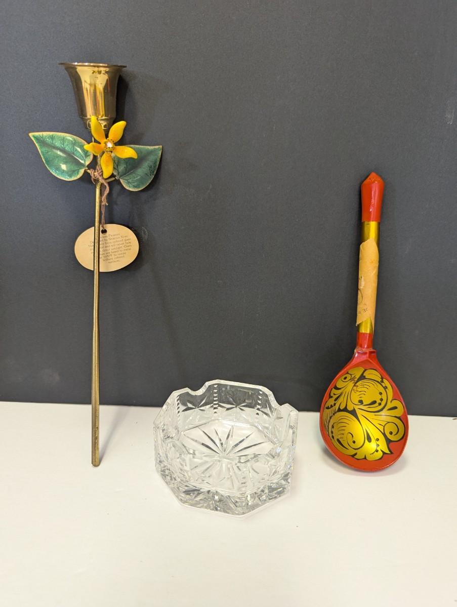Bovano Flowers Designed By Sharron Kree Handmade From Colored Glass & Metal & Russian Folk Art Ladle Spoon Lacquer