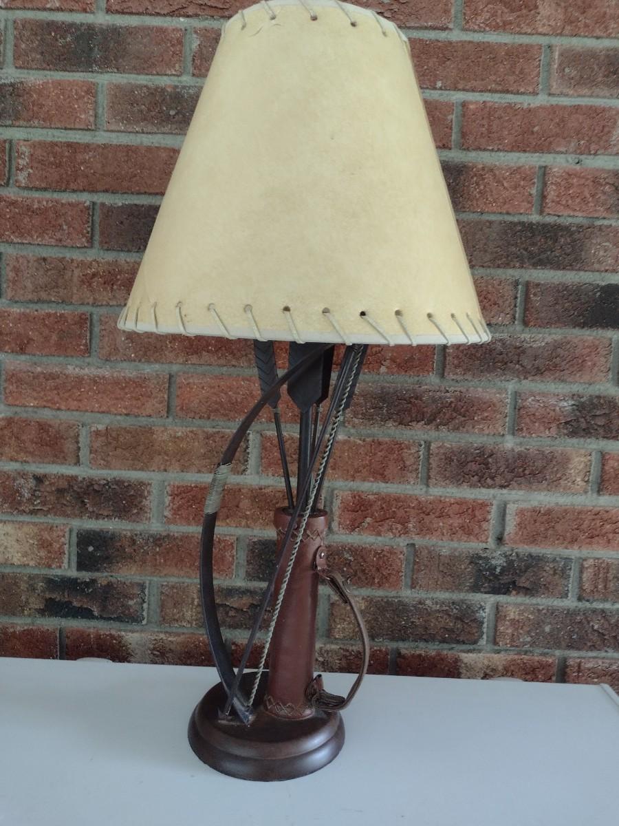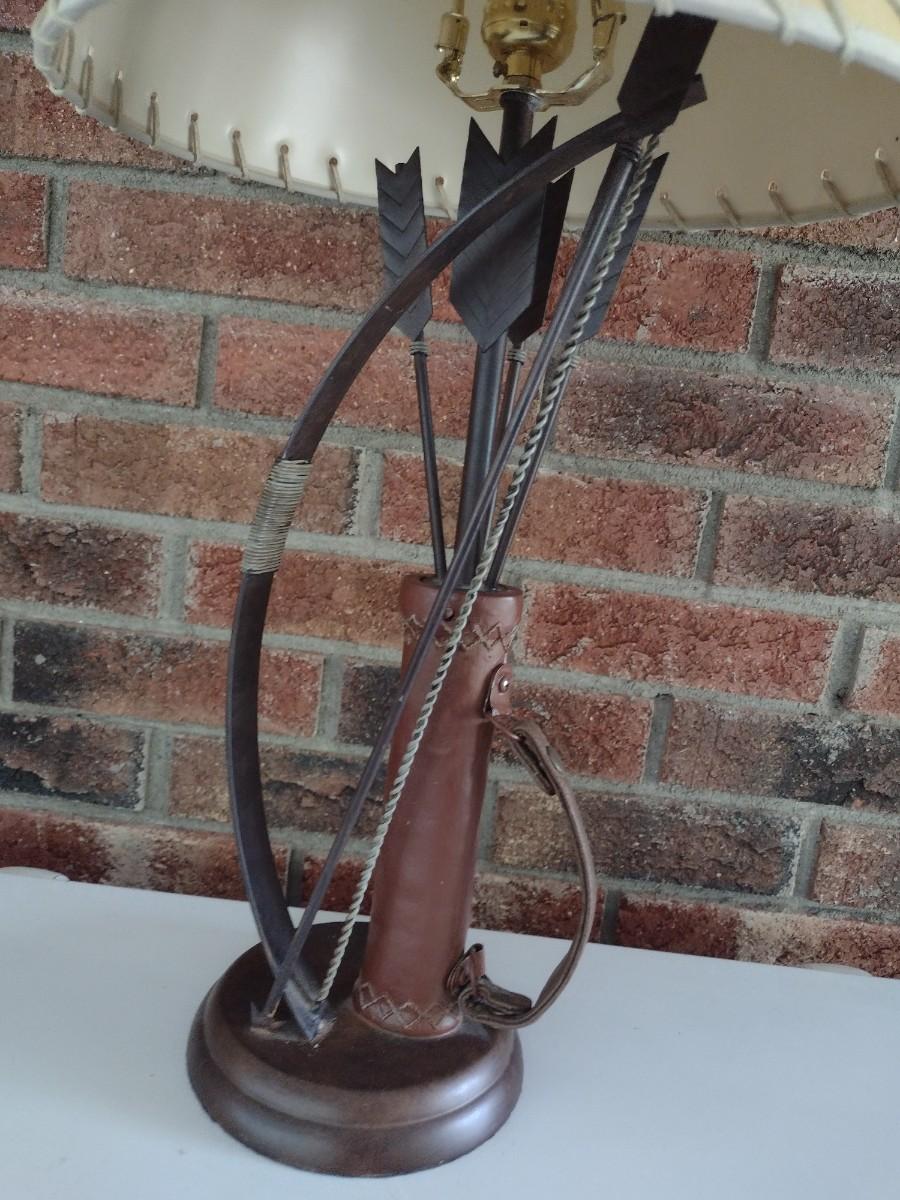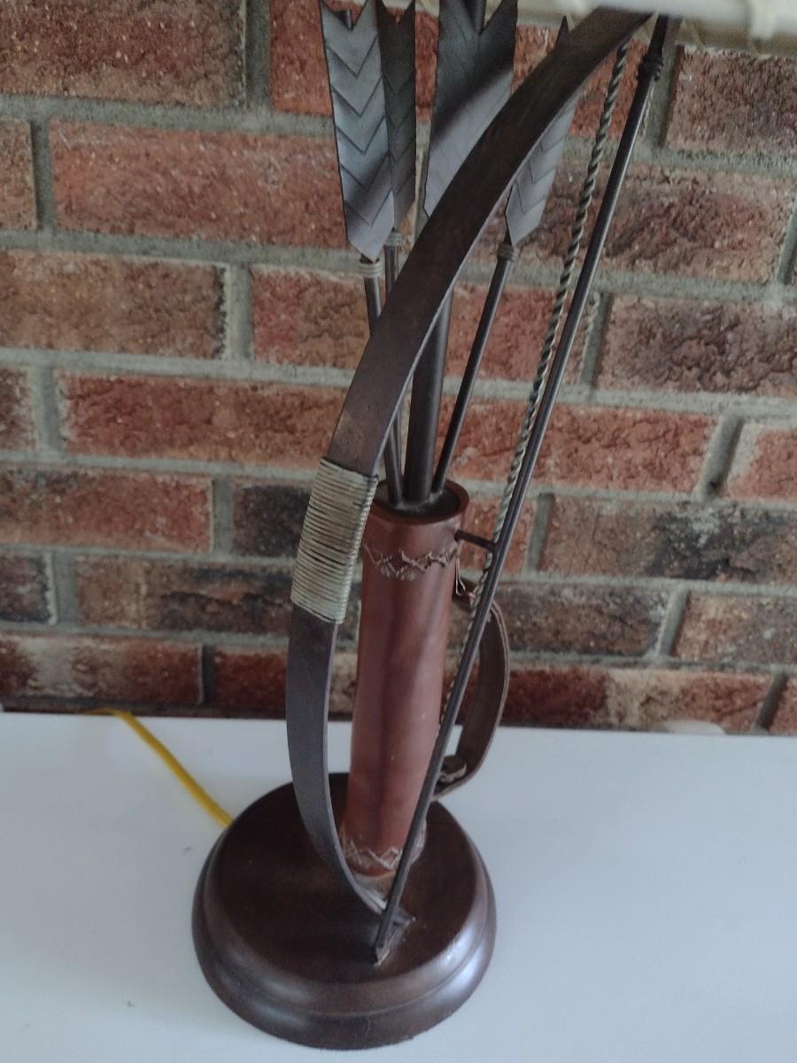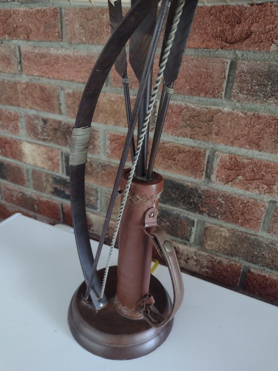 Bow, Arrow and Quiver Desk Top Lamp Metal and Leather