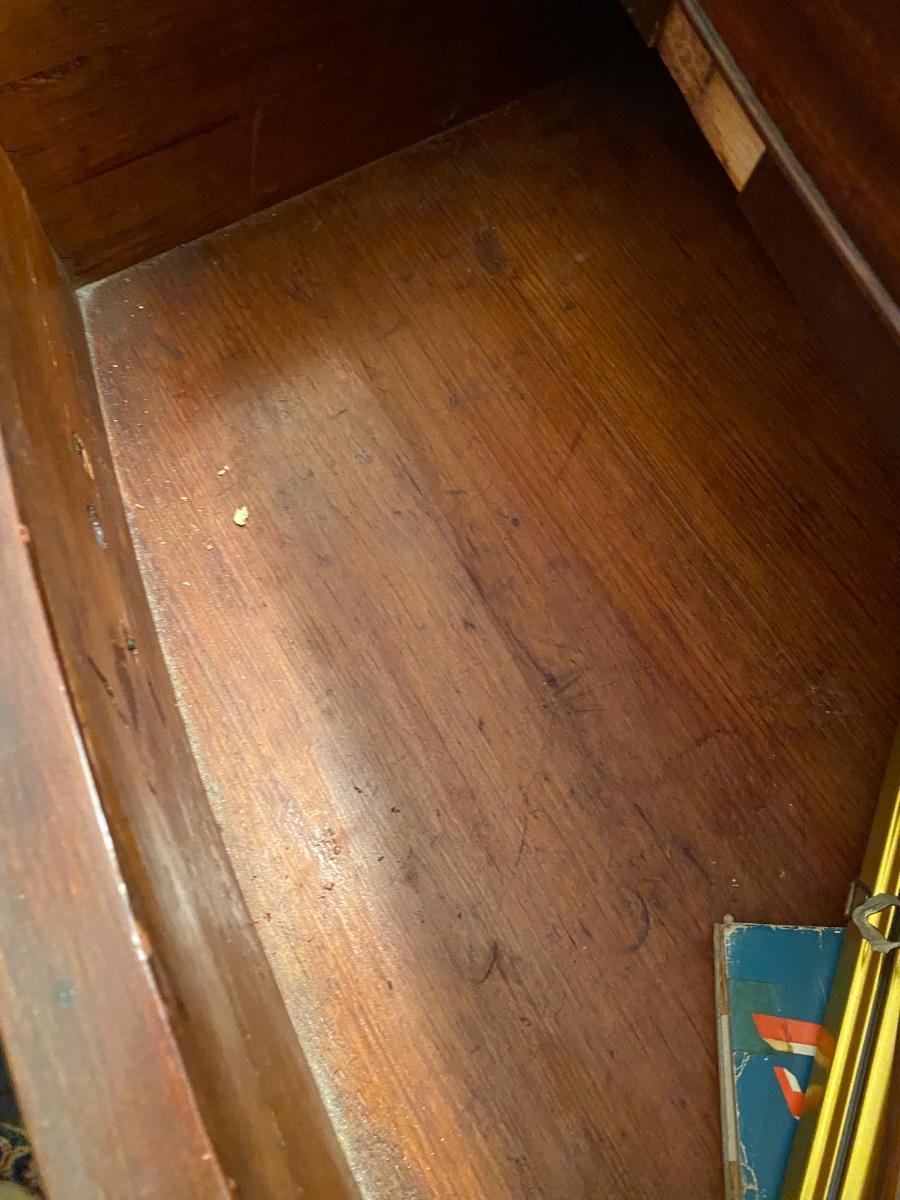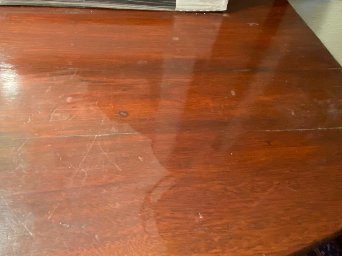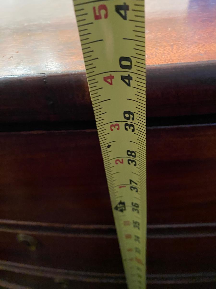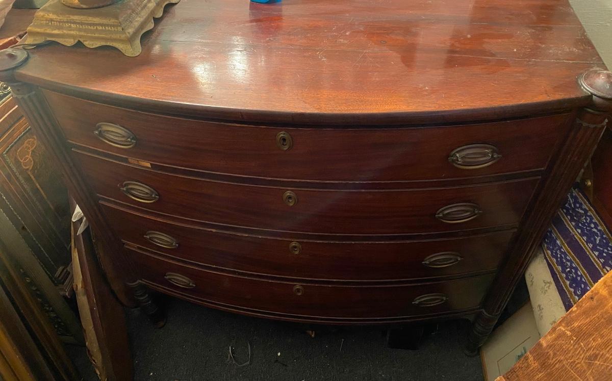 Bow Fronted Mahogany Chest withbrass handles and fluted corner details. Measures approx 41Wx40Hx22 D