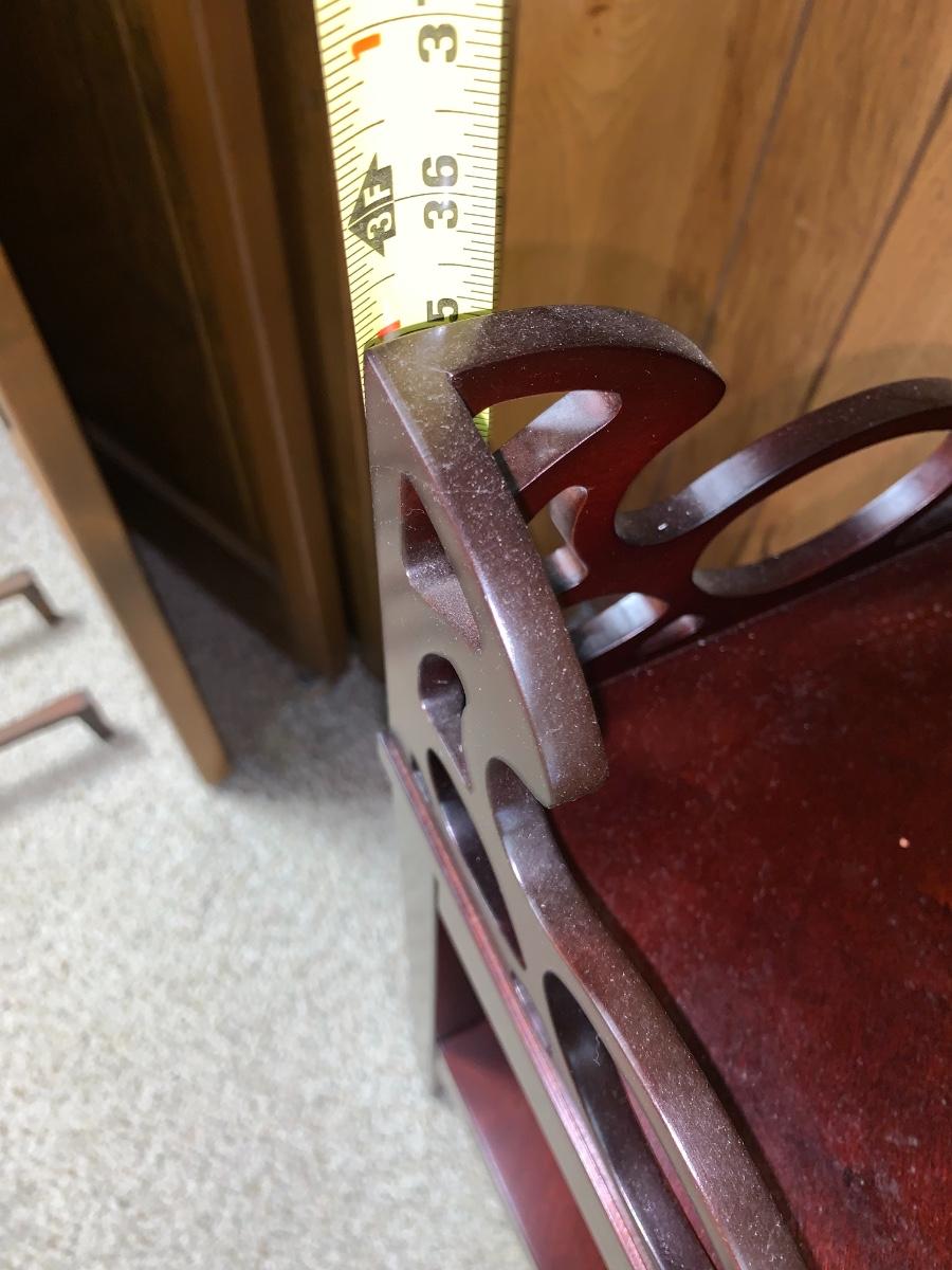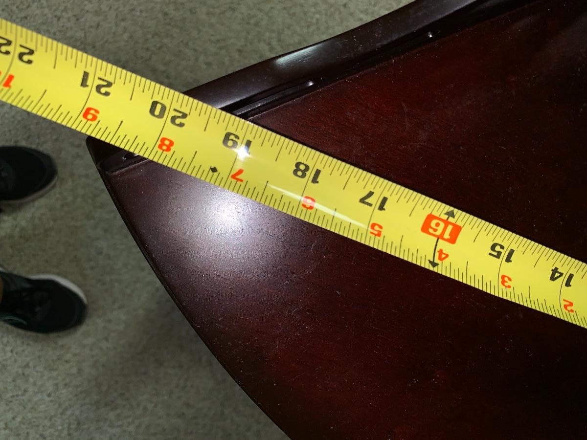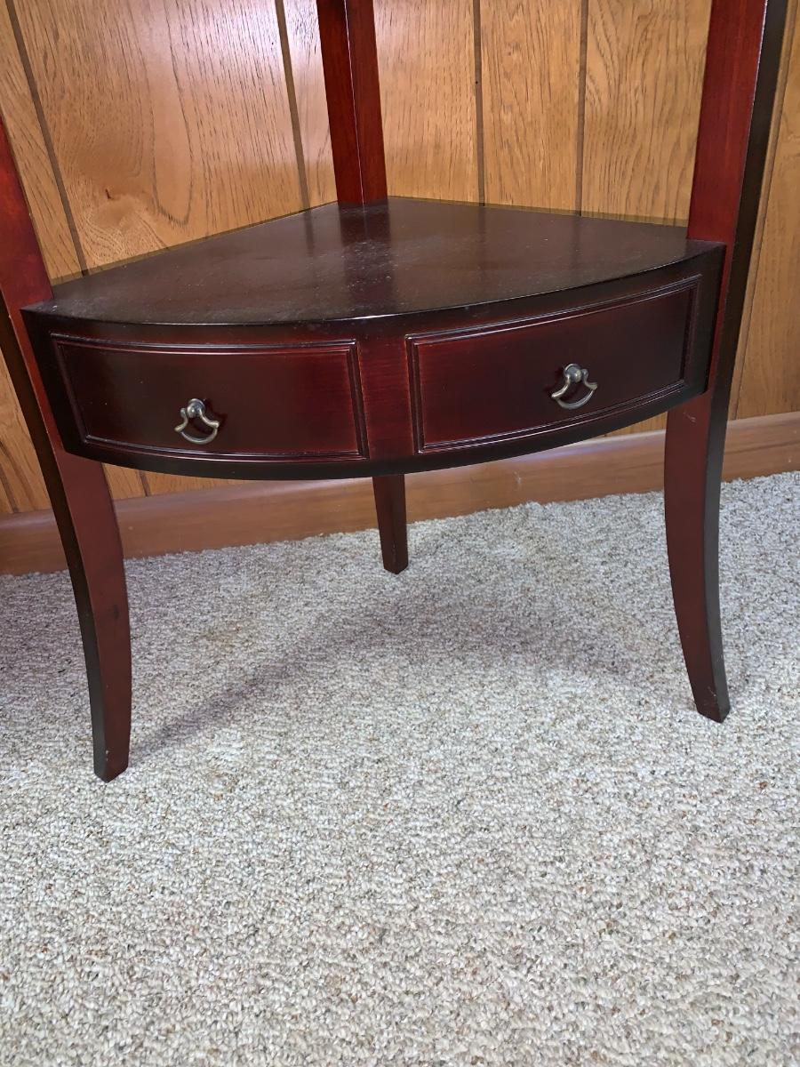 Lovely little accent corner table,dark wood, with bowed out legs