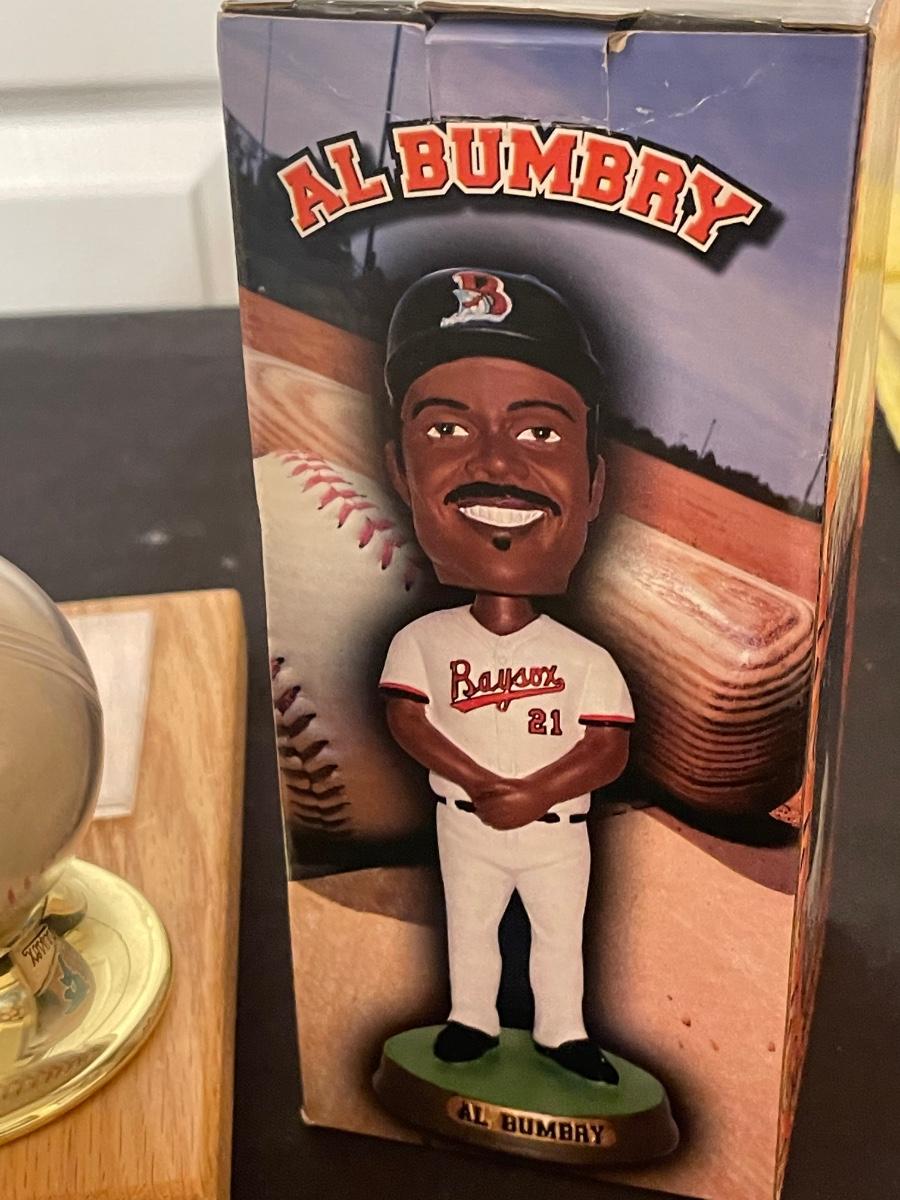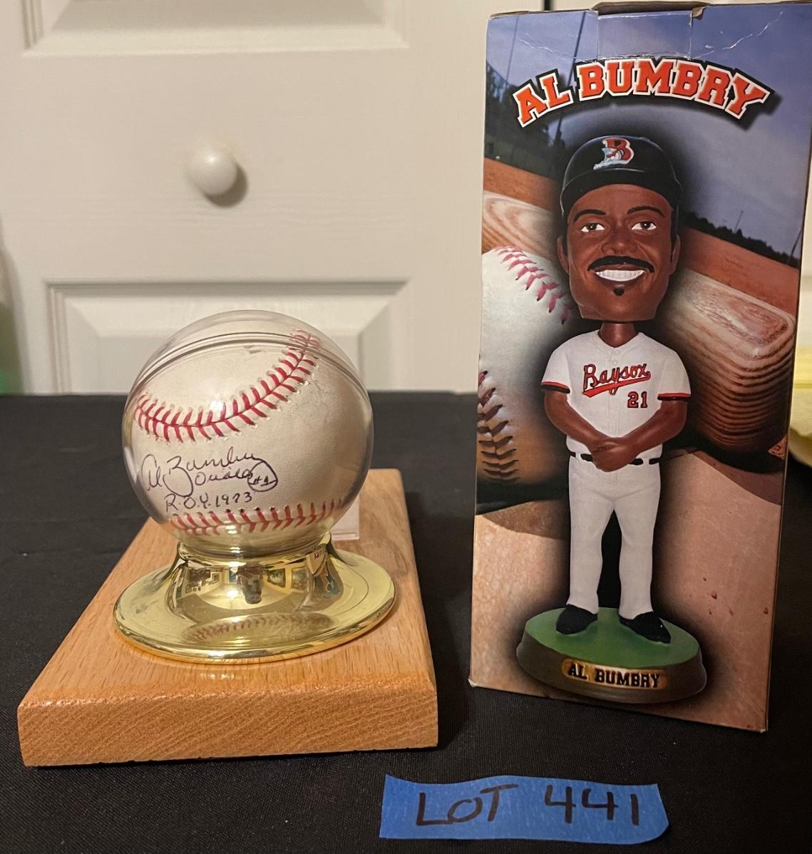 Authentic #21 Bowie Baysox player A1 Bumbry sig. on framed ball, A1 Bobblehead.