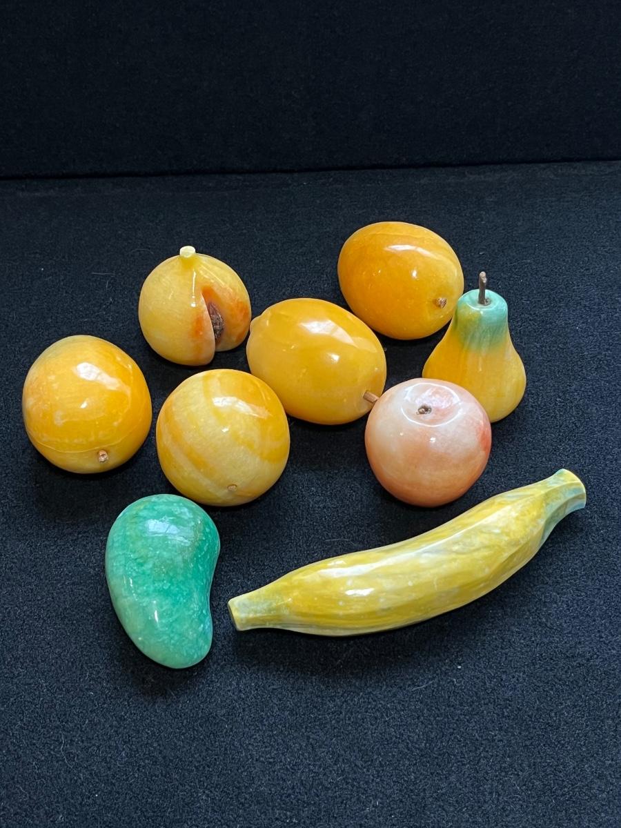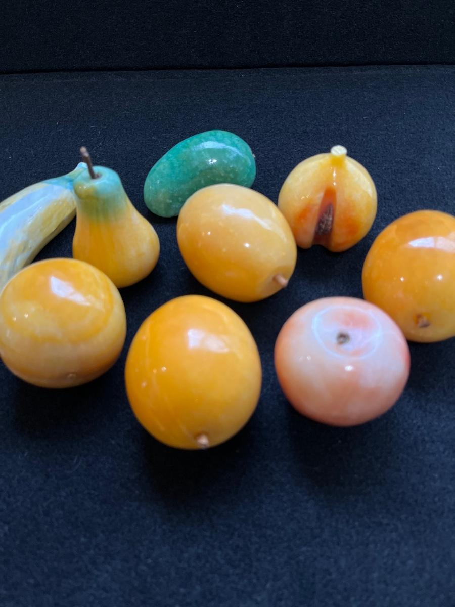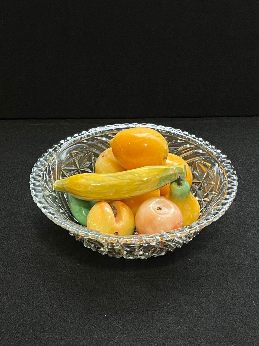 Assorted Colorful Stone Fruit ~ Nine (9) Pieces & Glass Fruit Bowl