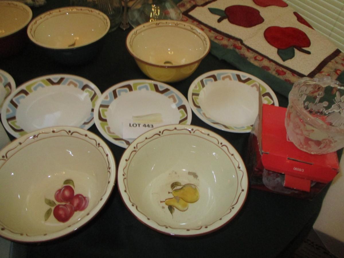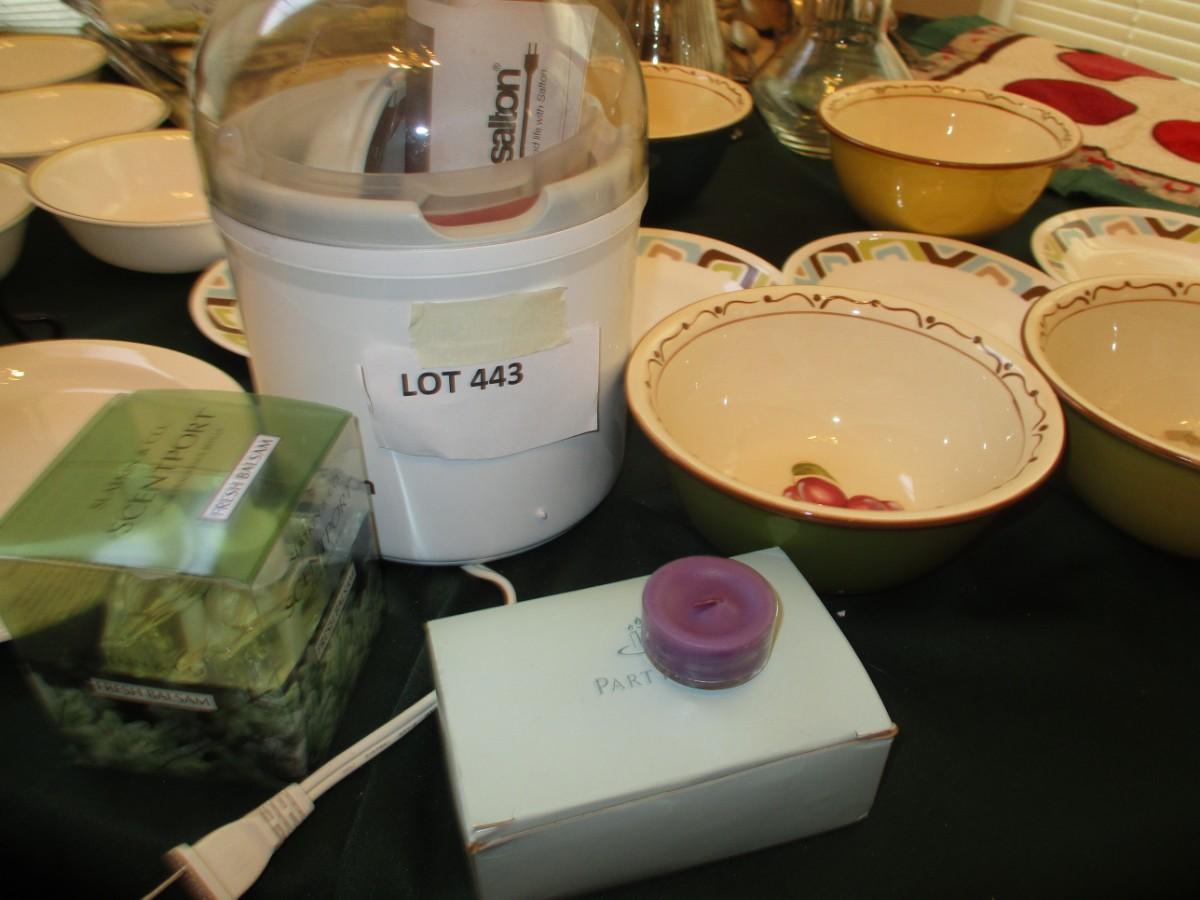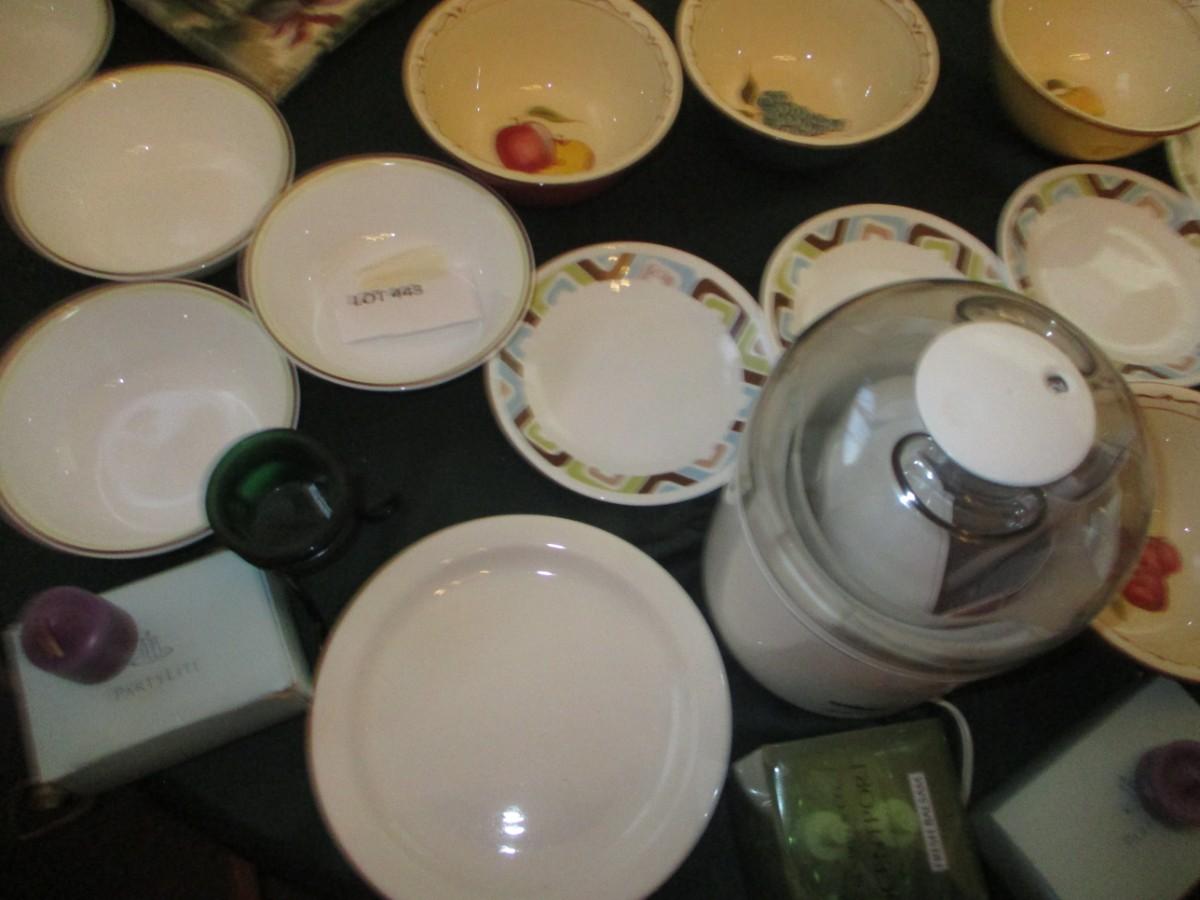 corelle Bowls (4). Vinyl Tablecloths (3). Corelle saucers (4). Yogurt maker. LaTour Flatware. Vases. apple Table mats