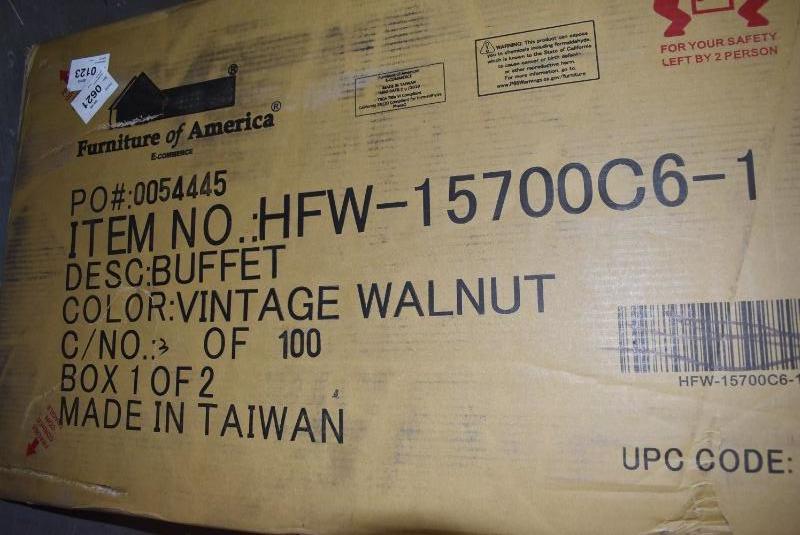 Box 1 of 2 ONLY (PROJECT PIECE) Furniture of America Francis Industrial Multi-Storage Dining Server, Walnut