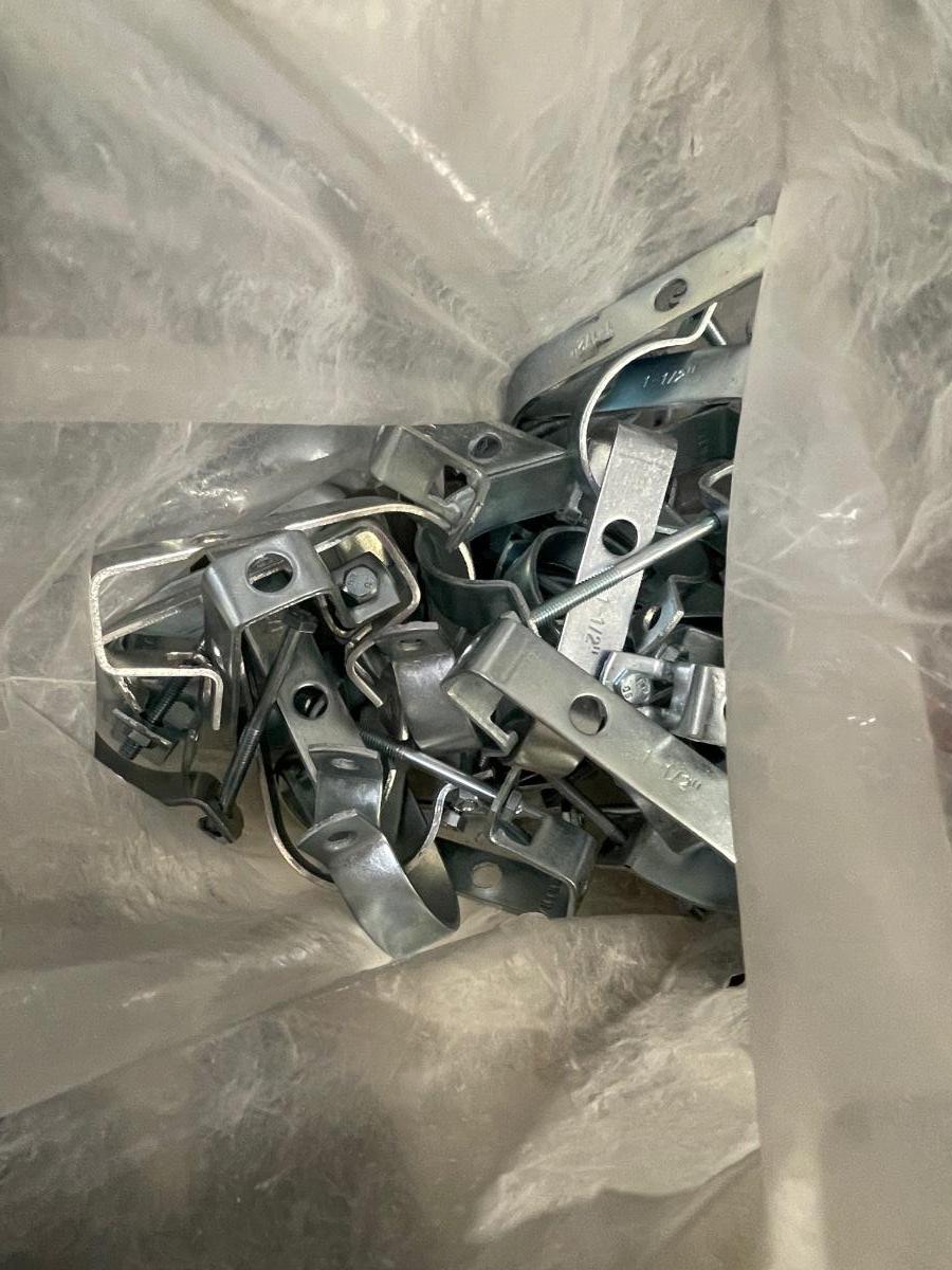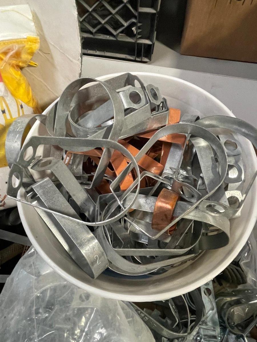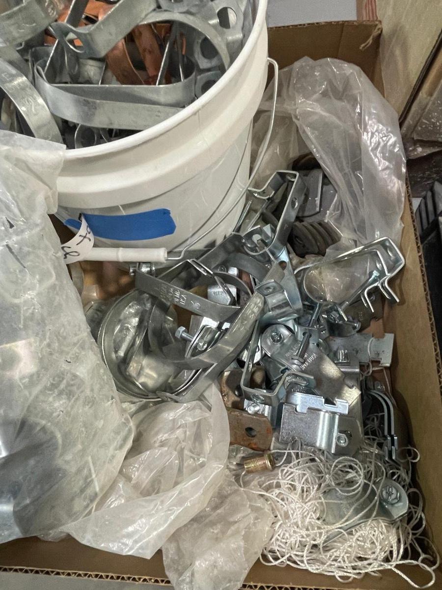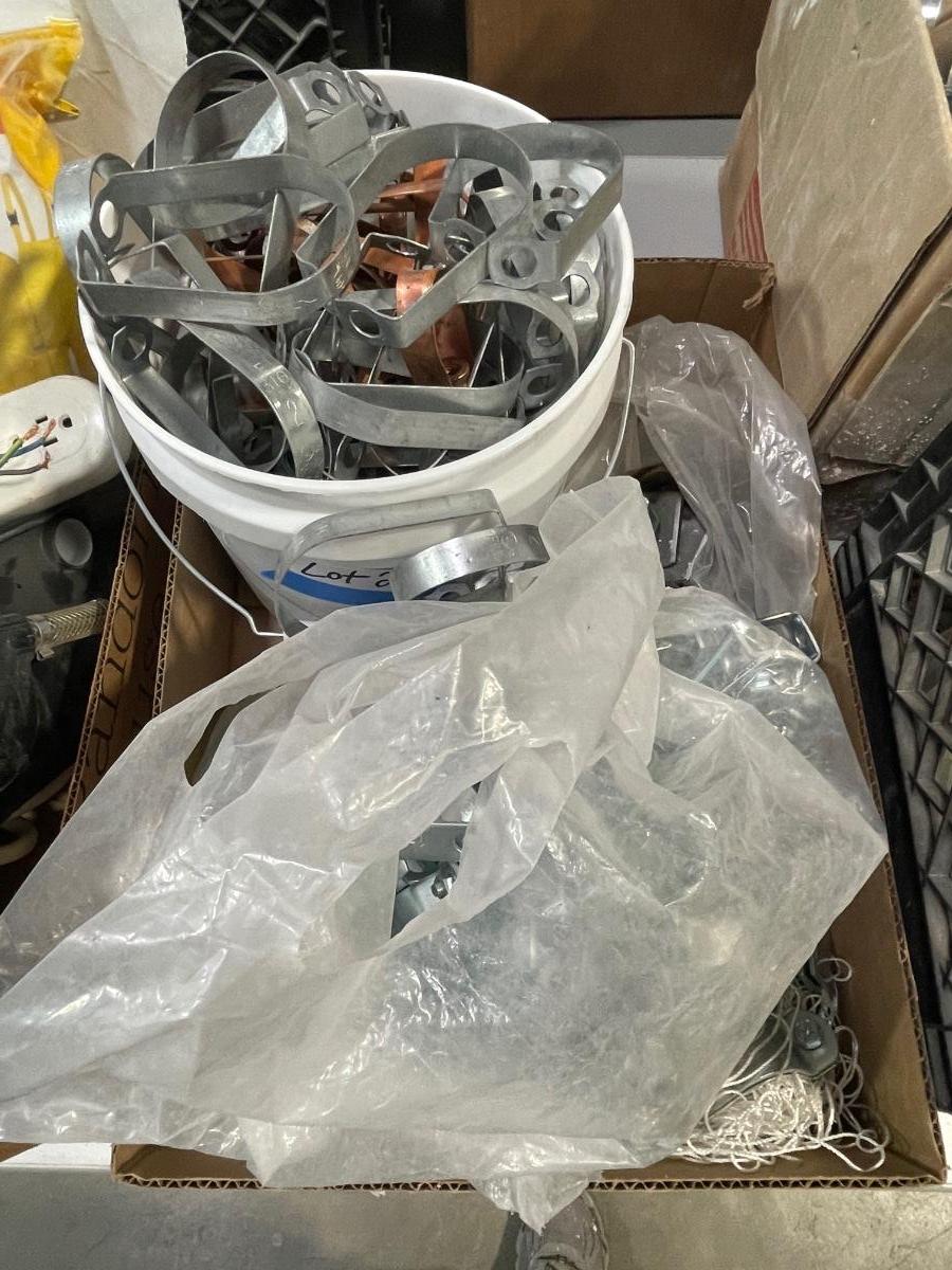 Box of Metal Clamps - maybe for fence or plumbing use