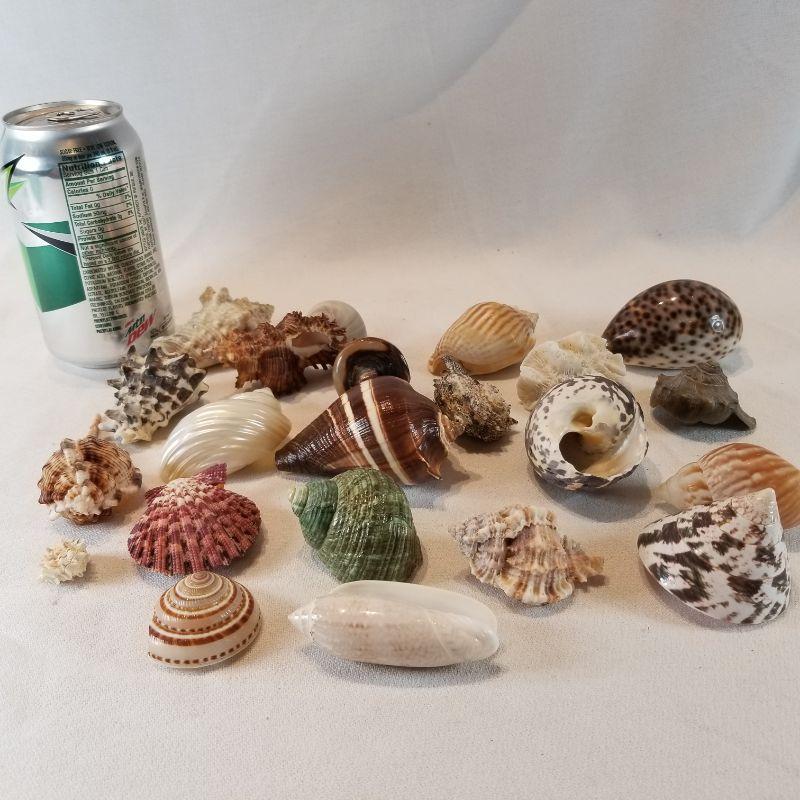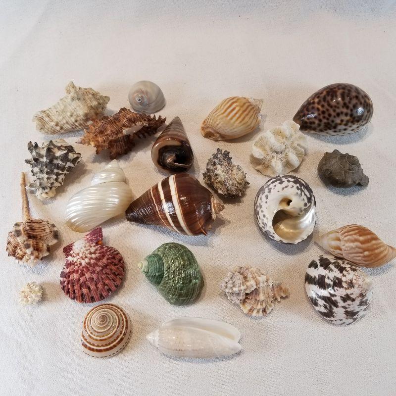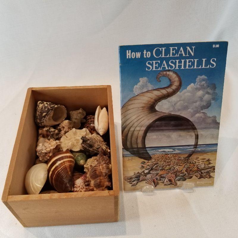 A nice wooden box fulled with over 20 different and beautiful shells. A fun and useful booklet on "How to Clean Seashells" is included in this lot. Both shells and book are in very good condition for age and use.