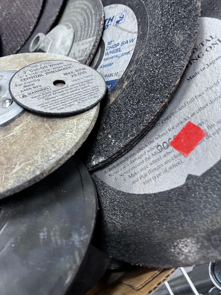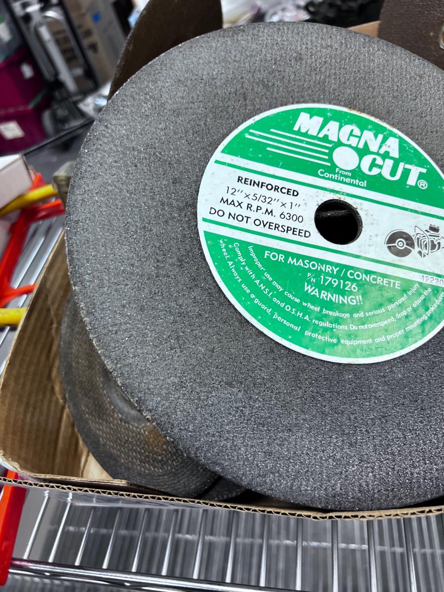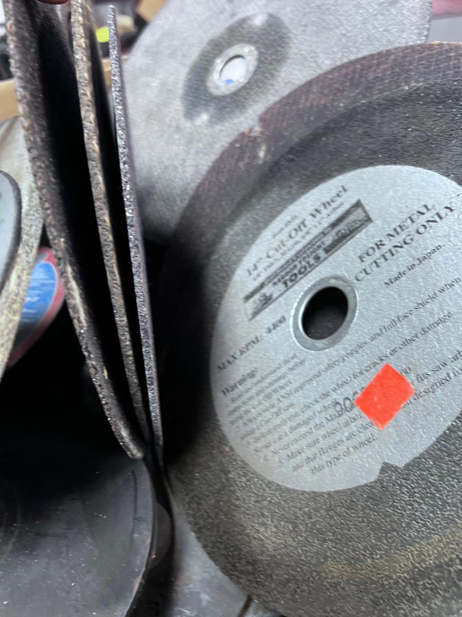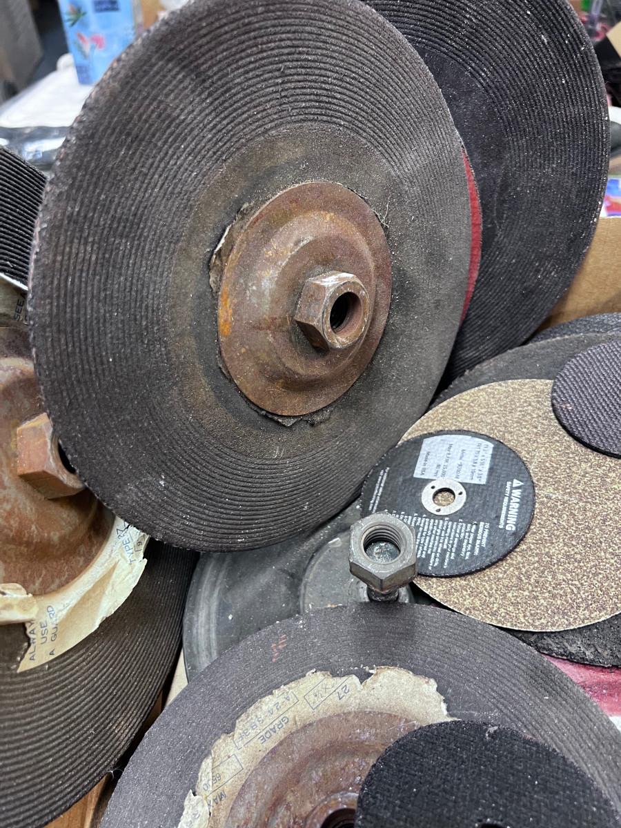 Box full of Abrasive wheels, Cut off Wheels and Sanding Discs.- Mostly New