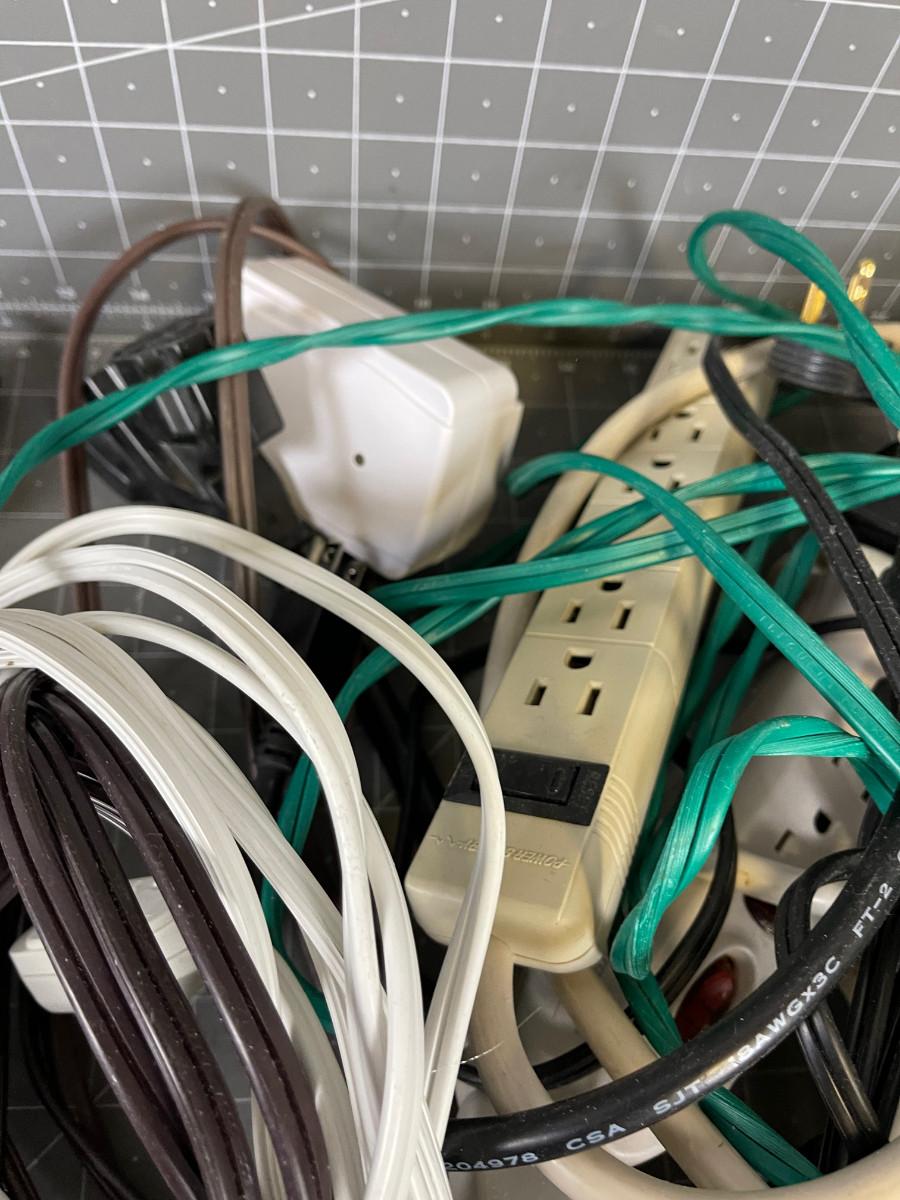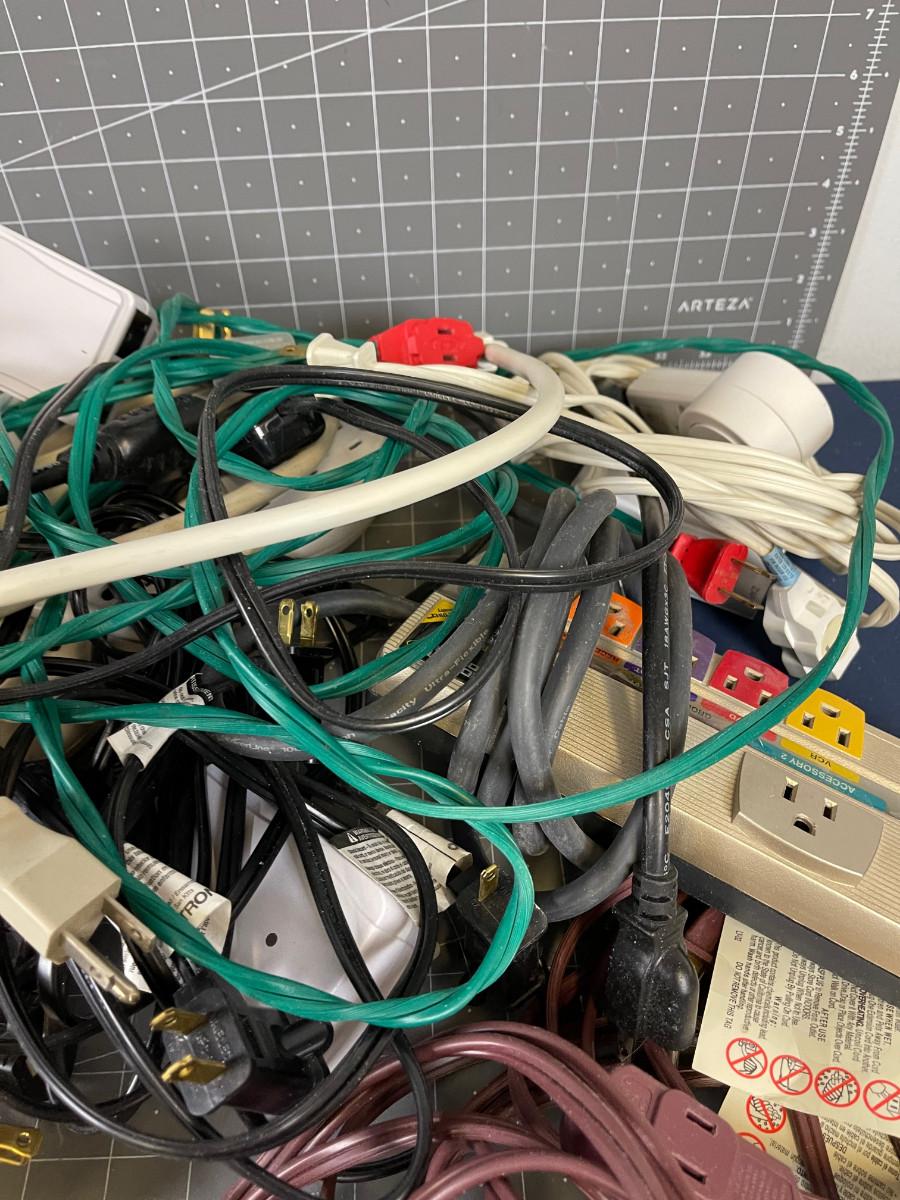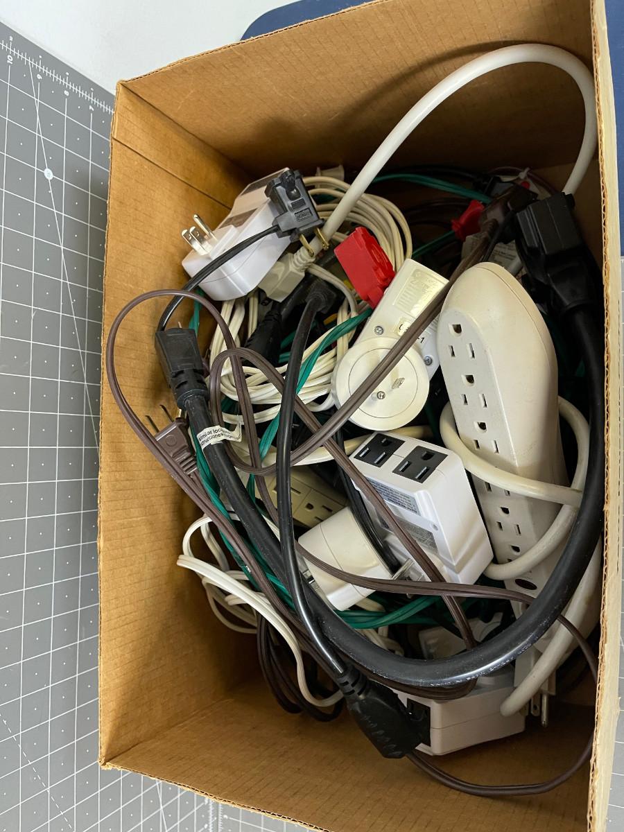 Box full of Cords Plug Multipliers etc.