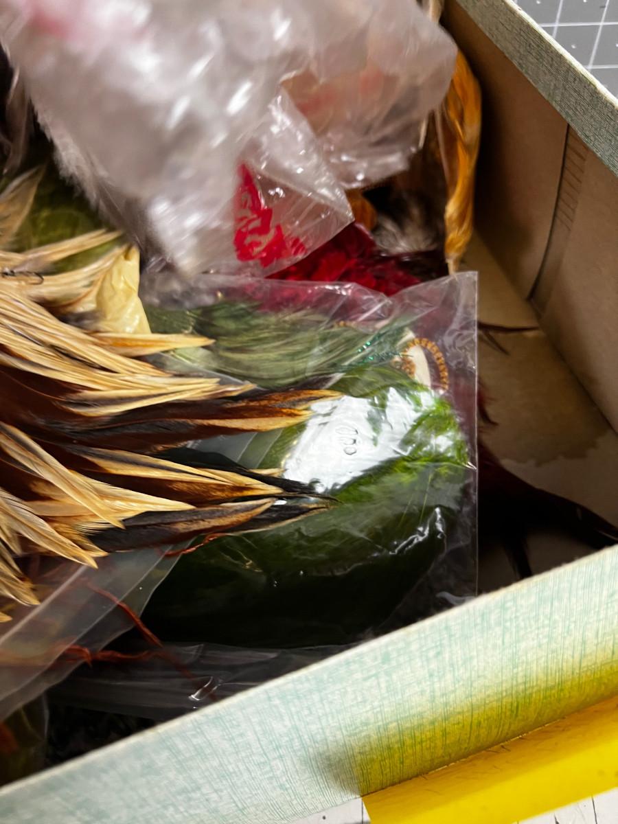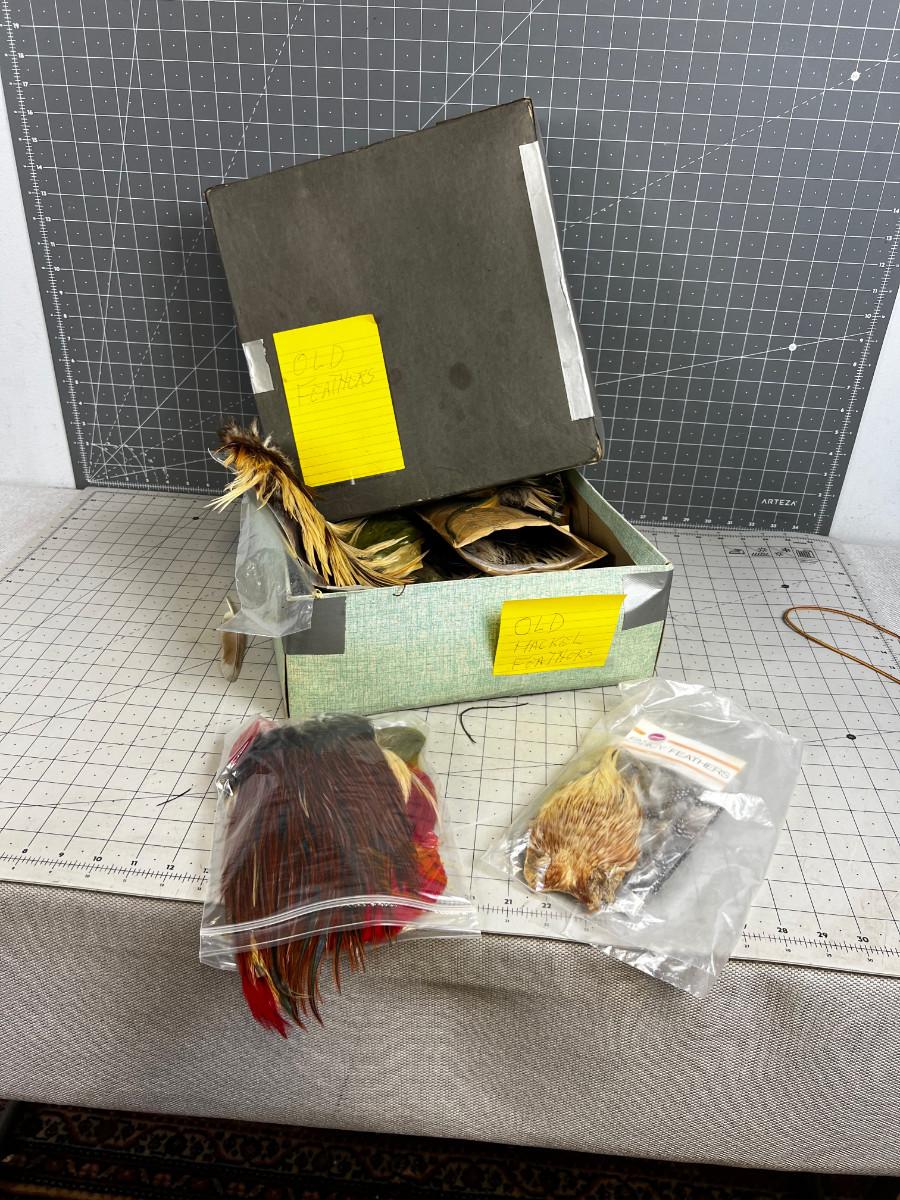 Box full of OLD FEATHERS