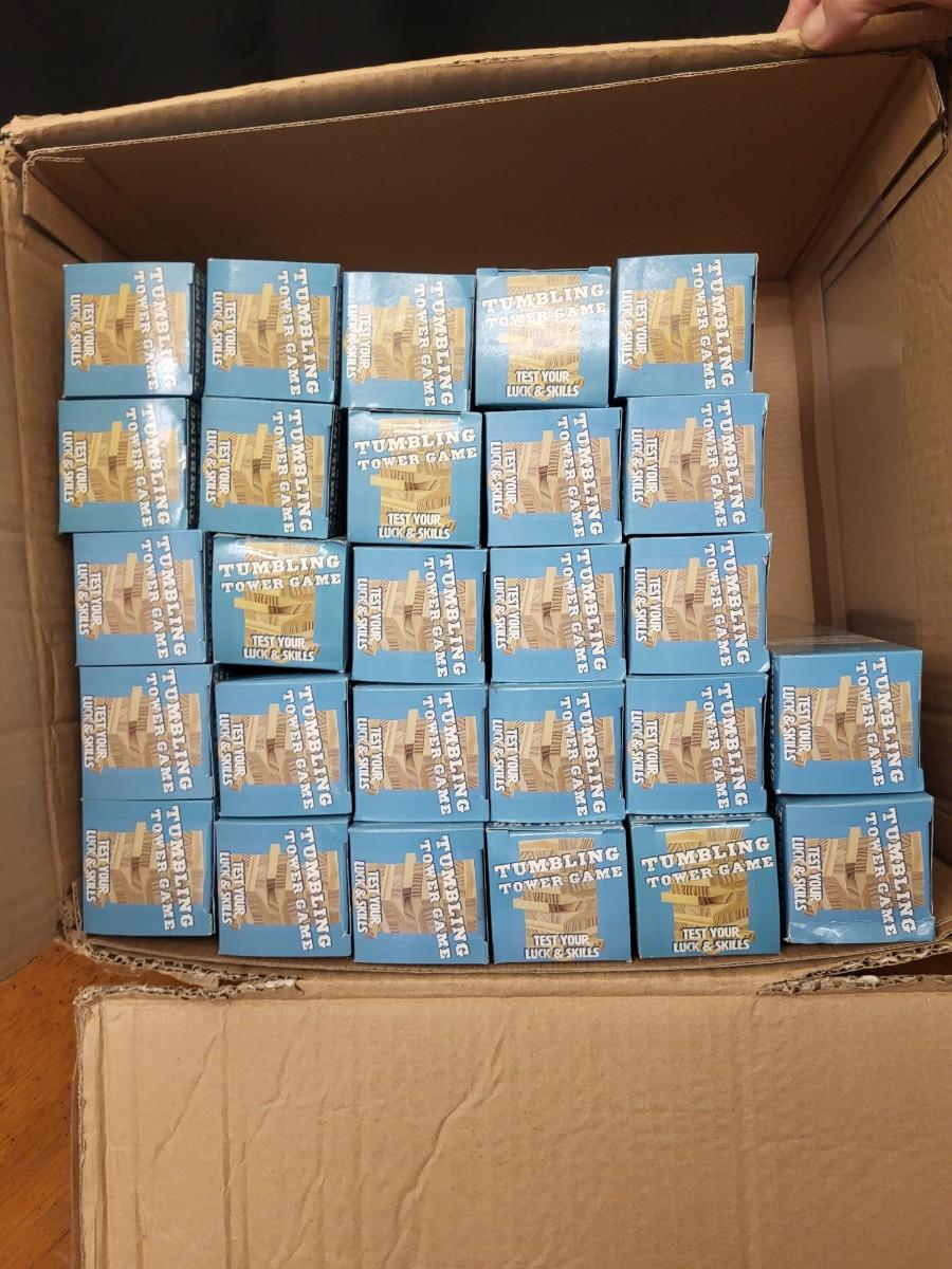 Gift:Box Lot 27 boxes of mini jenga;