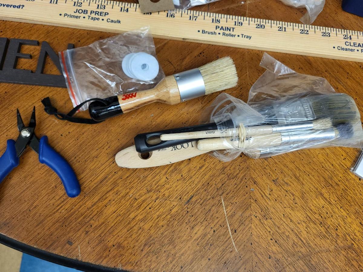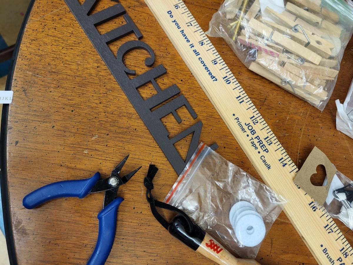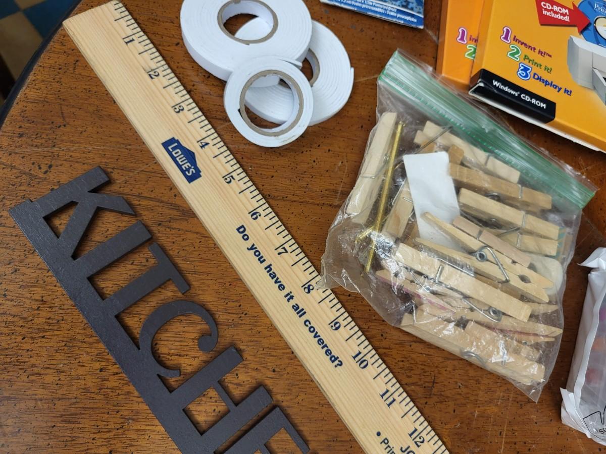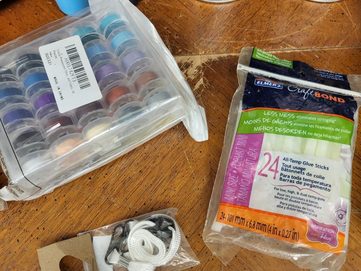 Crafting:Box Lot Assorted Crafting Items: Photo Calendar Kit, containers with lids;