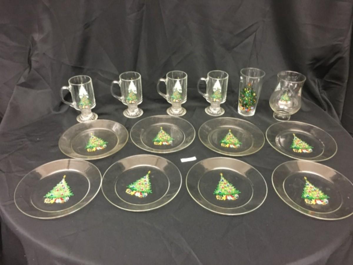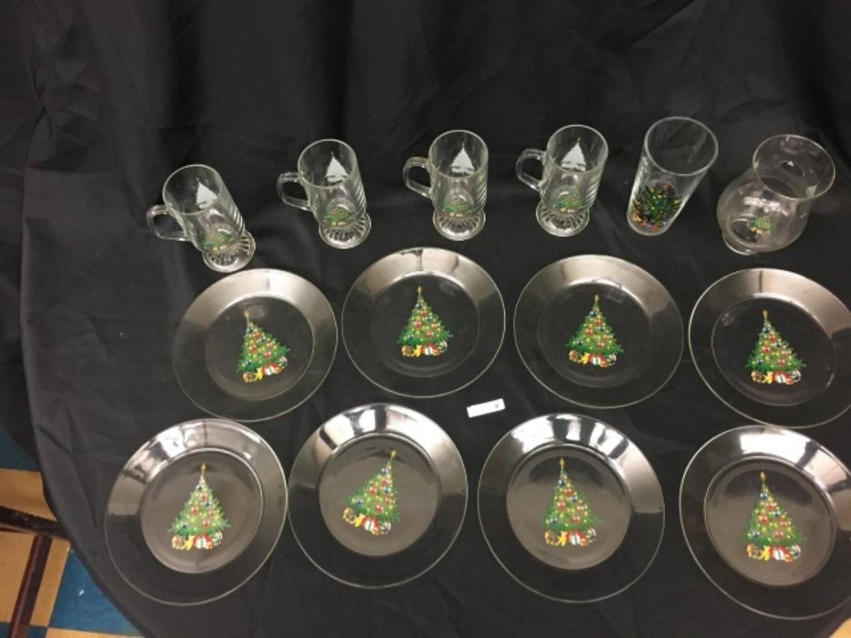 : Box Lot Christmas: 8 plates, 6 glasses;