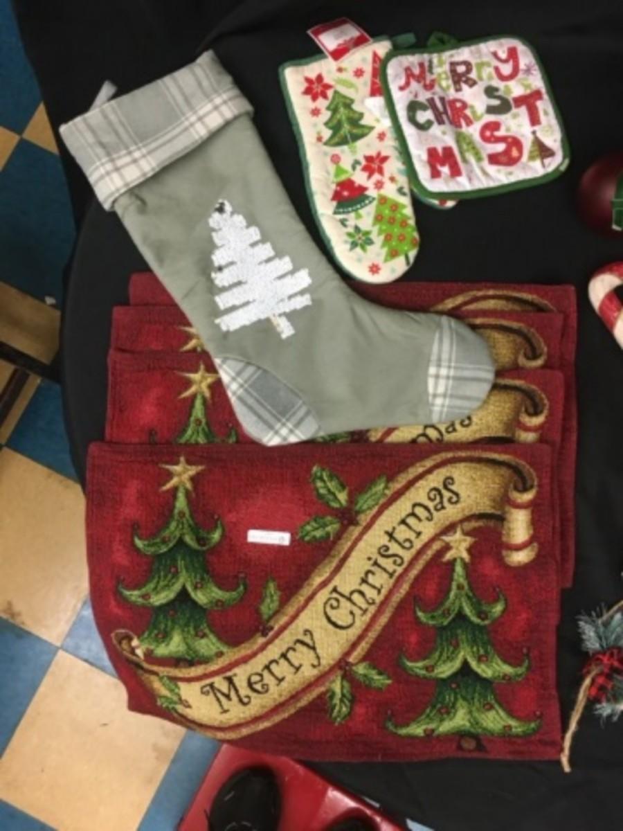 : Box Lot Christmas: Candy canes, placemats, bows, etc;