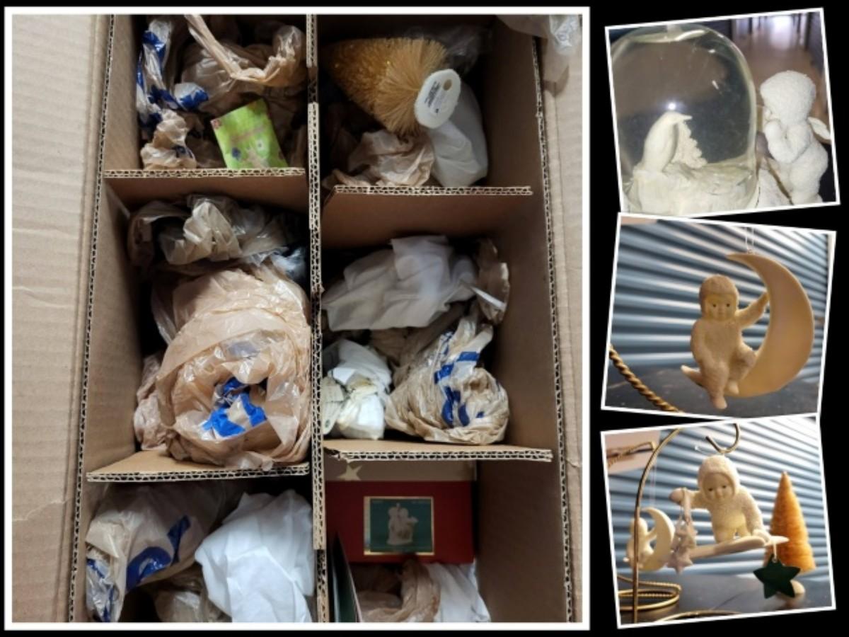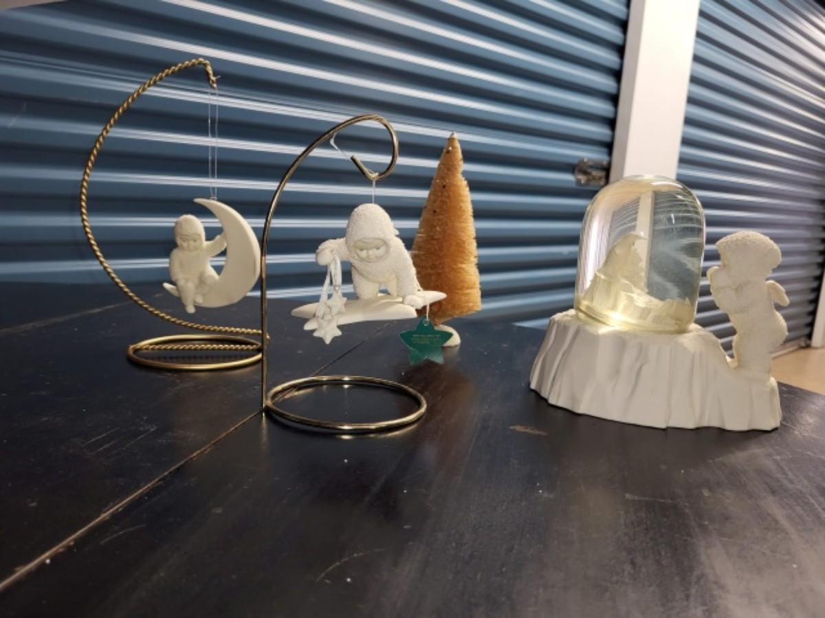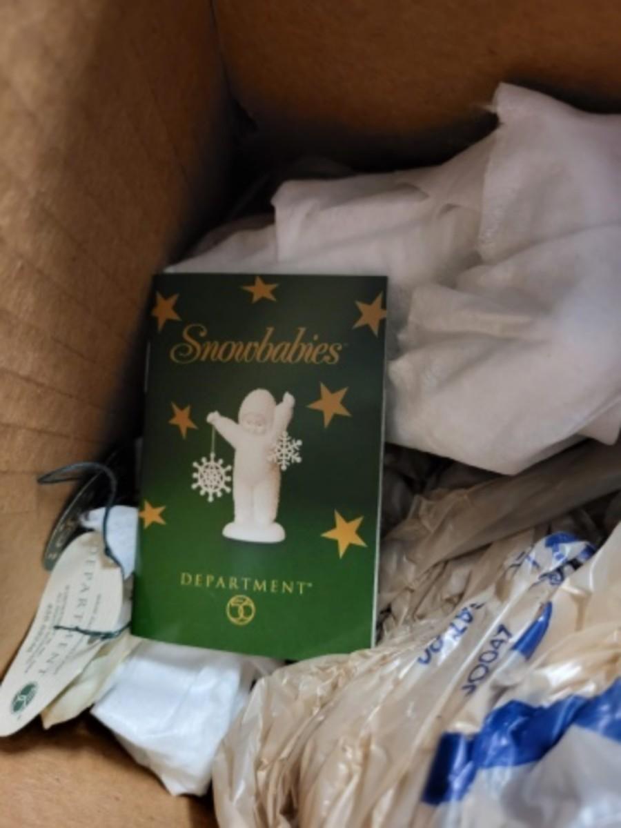 Snowbabies displayed PLUS more Snowbabies and décordecor in box, unwrapped