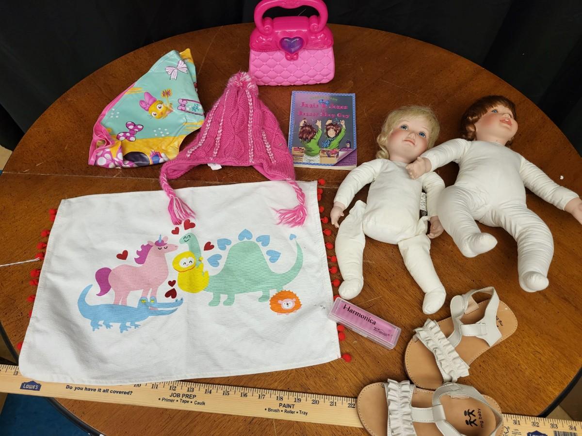 Children:Box Lot Harmonica, baby dolls, shoes, mics;