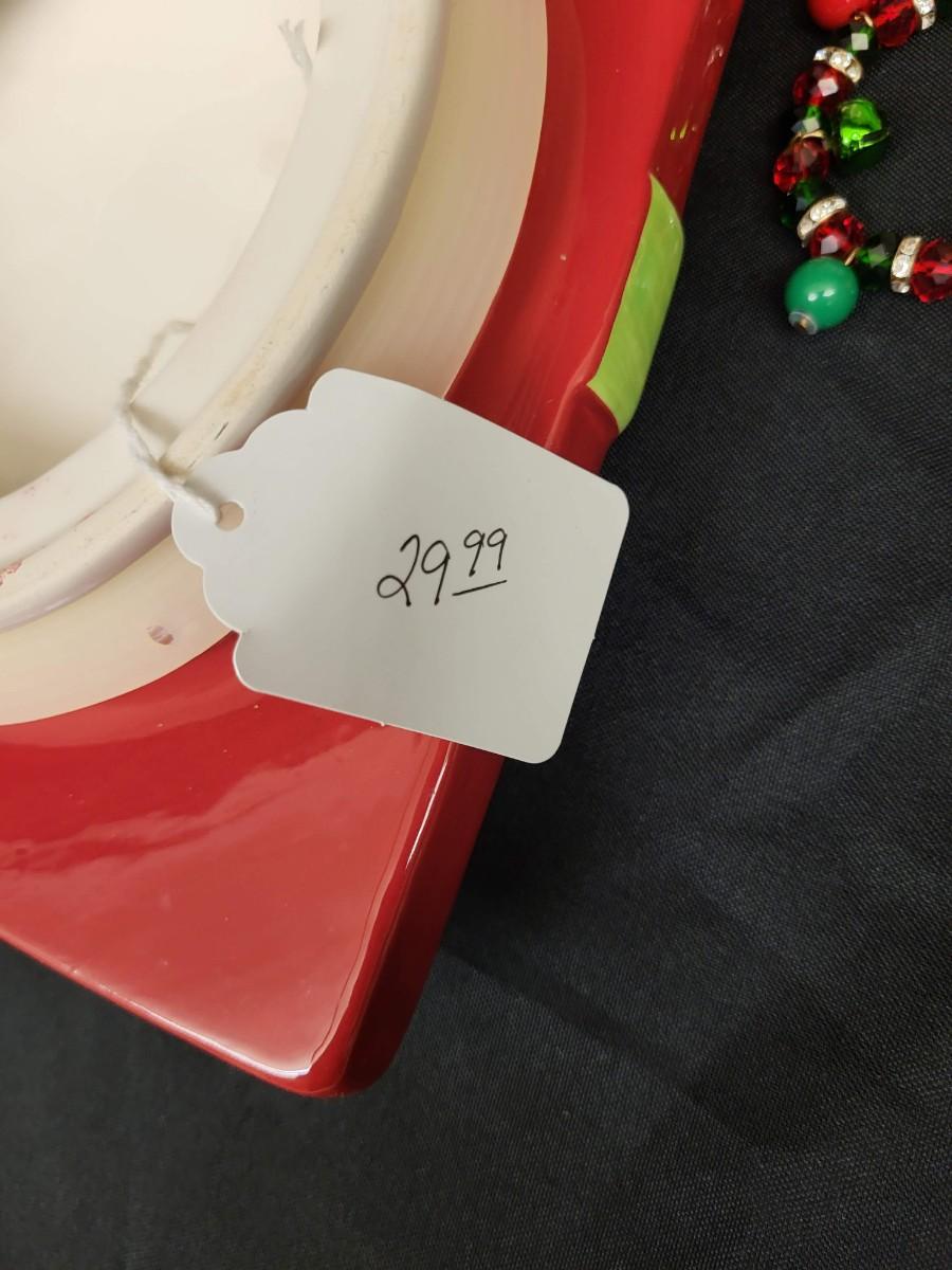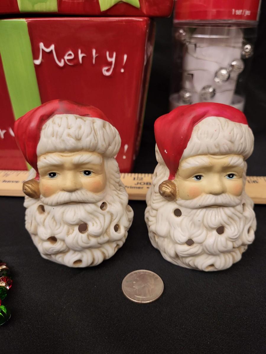 Christmas:Box Lot Merry Christmas Cookie jar; Lights, 2 Santa candle holders, misc;
