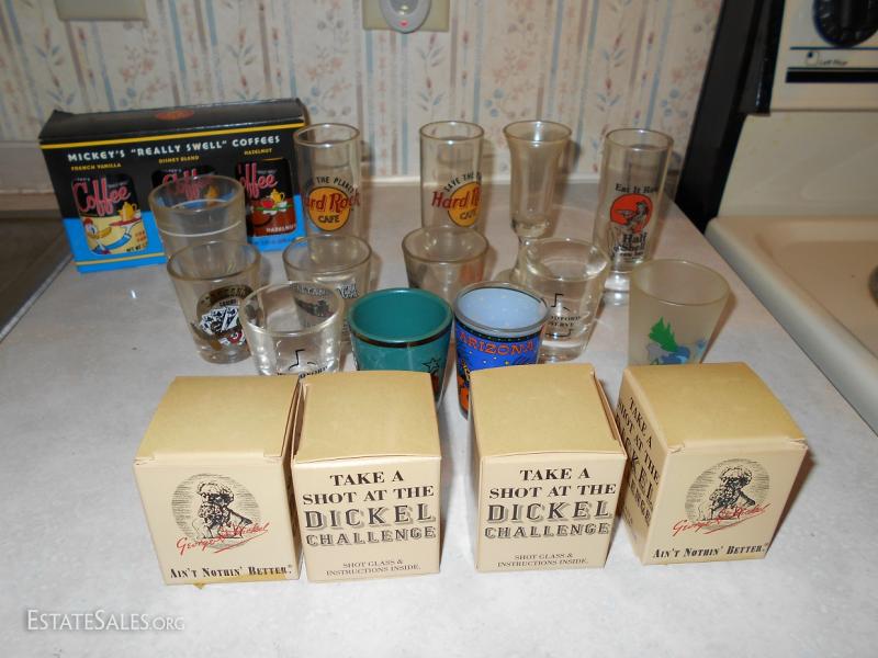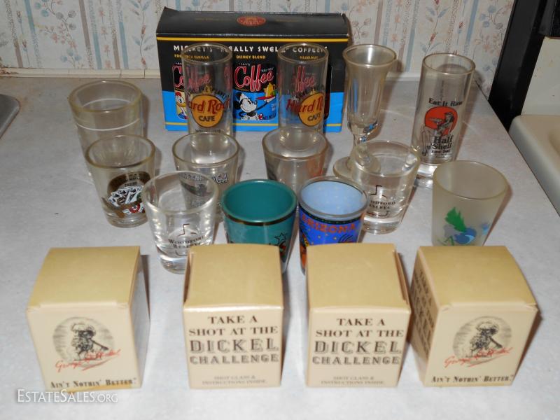 Box Lot of Beer and Liquer Related Glasses and Shot Glasses.