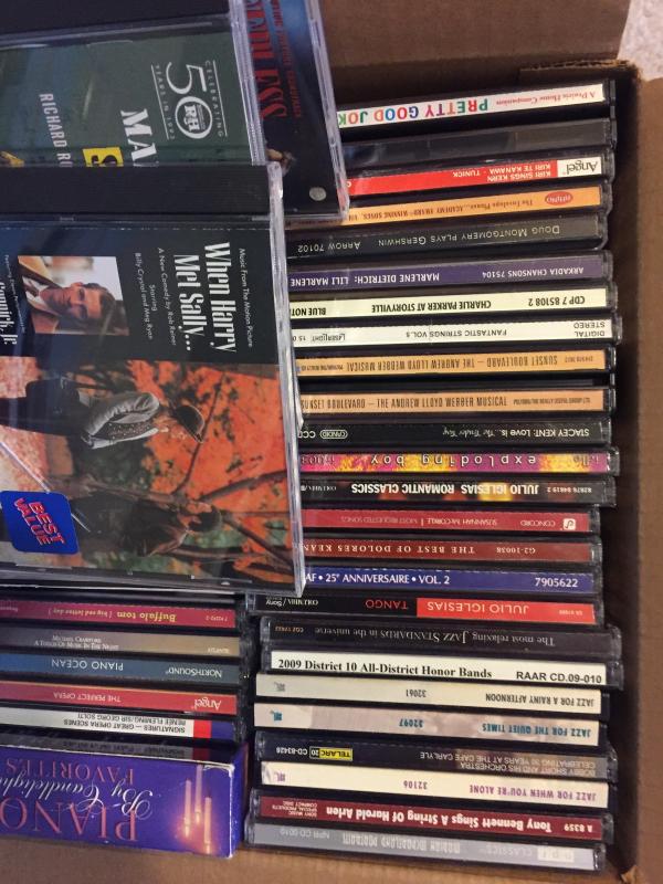 Inlcudes various music CDs of jazz, classical, oldies, big band, country, easy listening, etc. Several dozen CDs