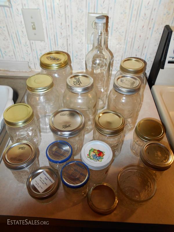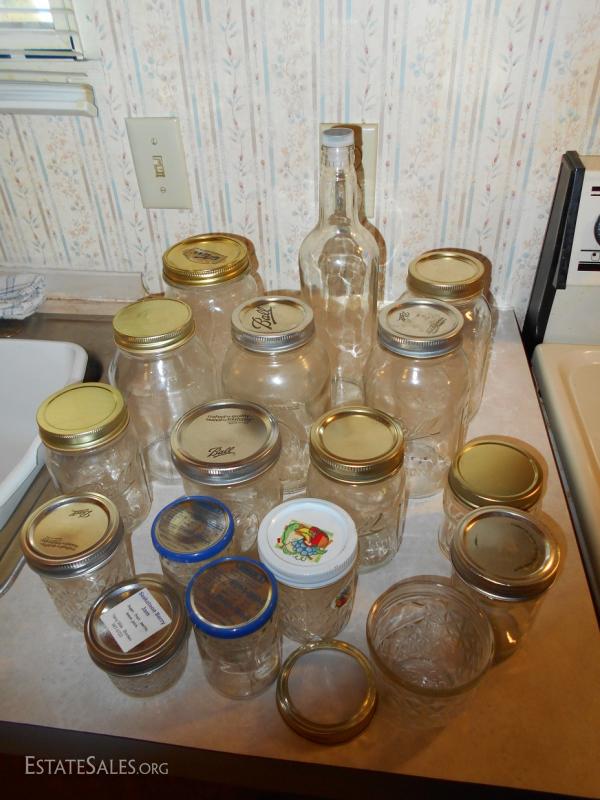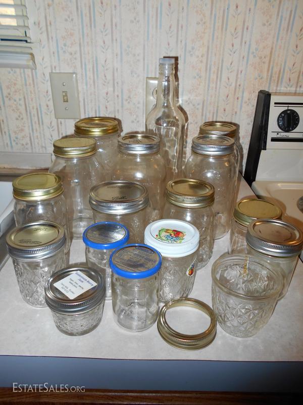 Box Lot of Jars and Storage Bottles. Some have lids.