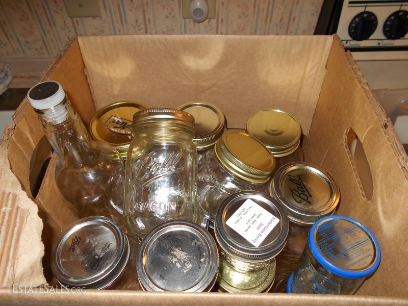Box Lot of Jars and Storage Bottles