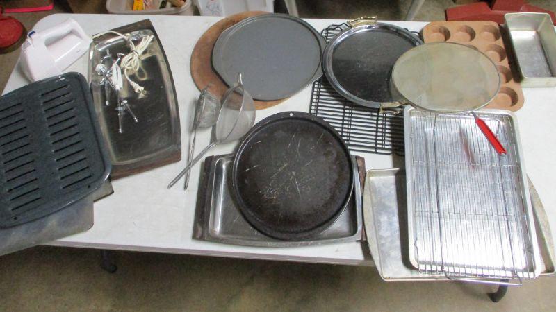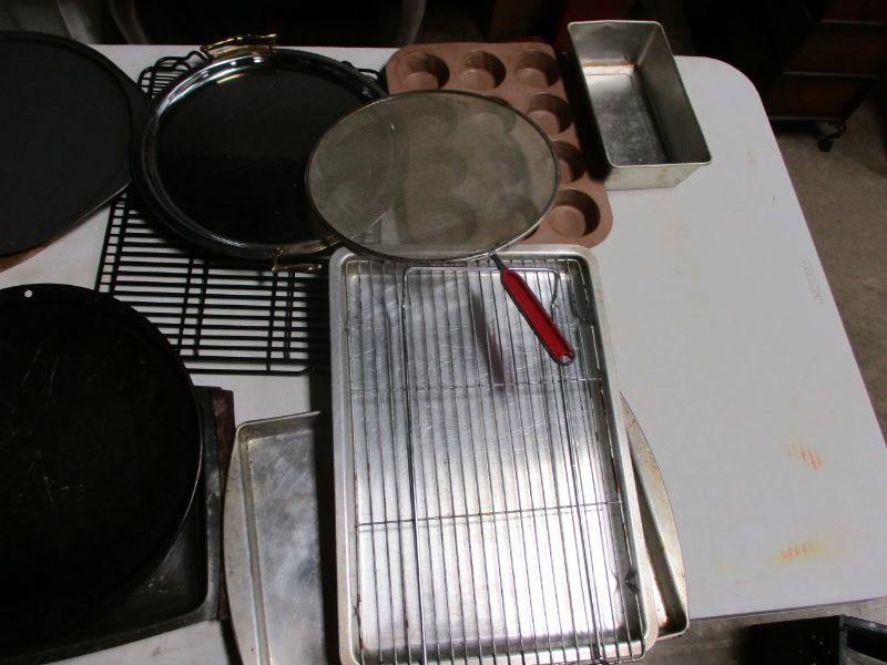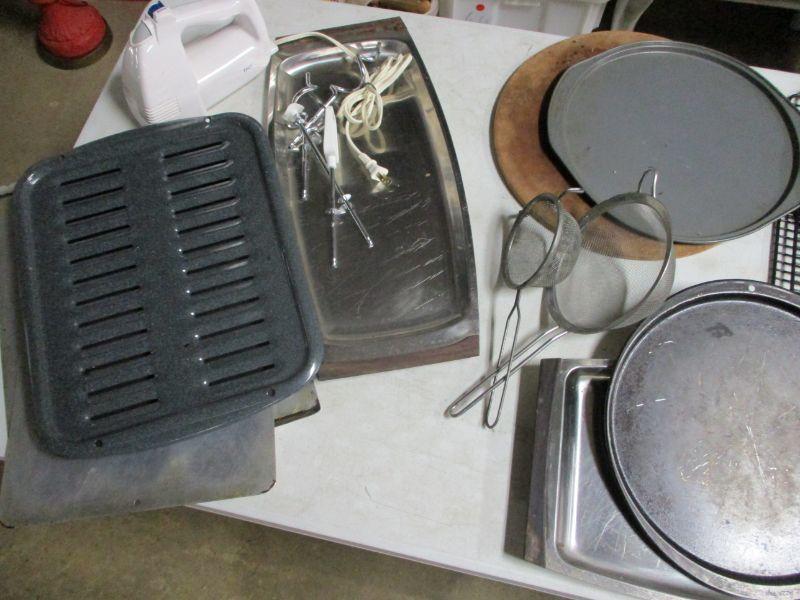 Lot 63 - Box Lot Of Kitchen Items - Cookie Sheet - Strainer
