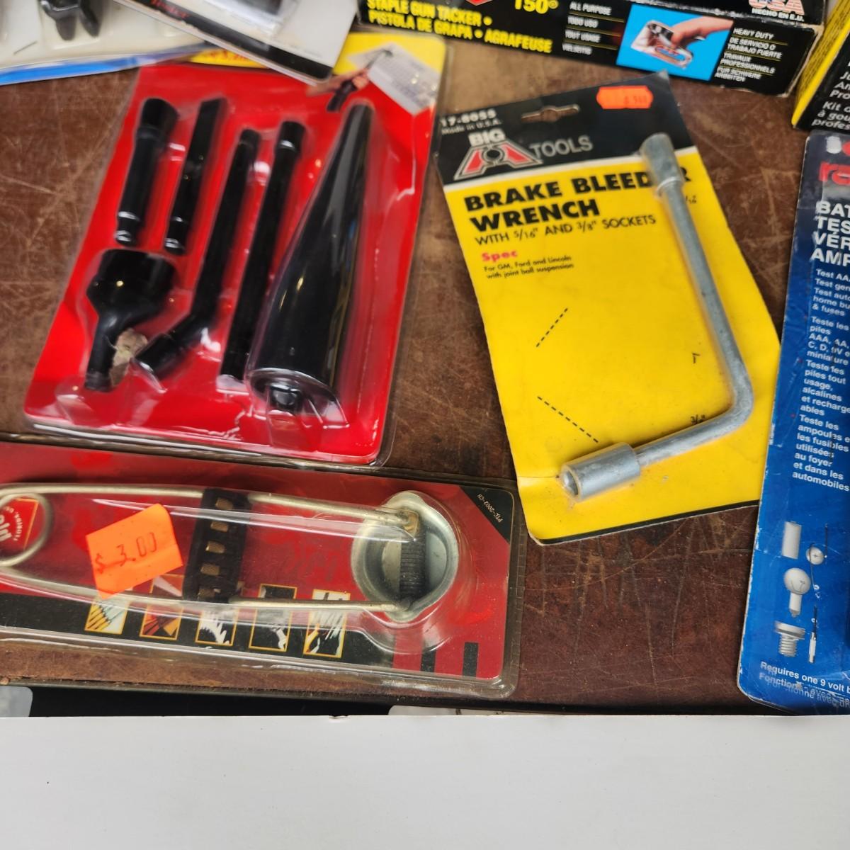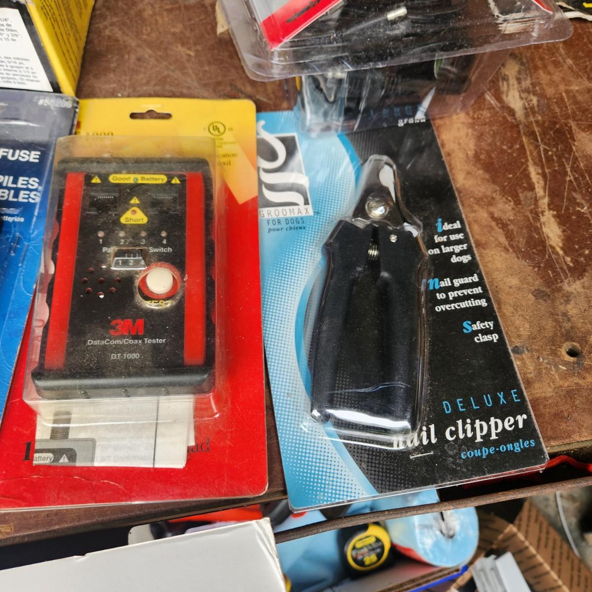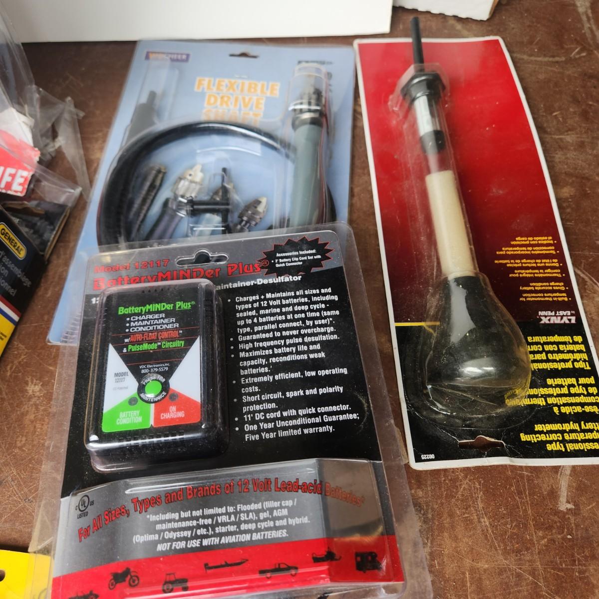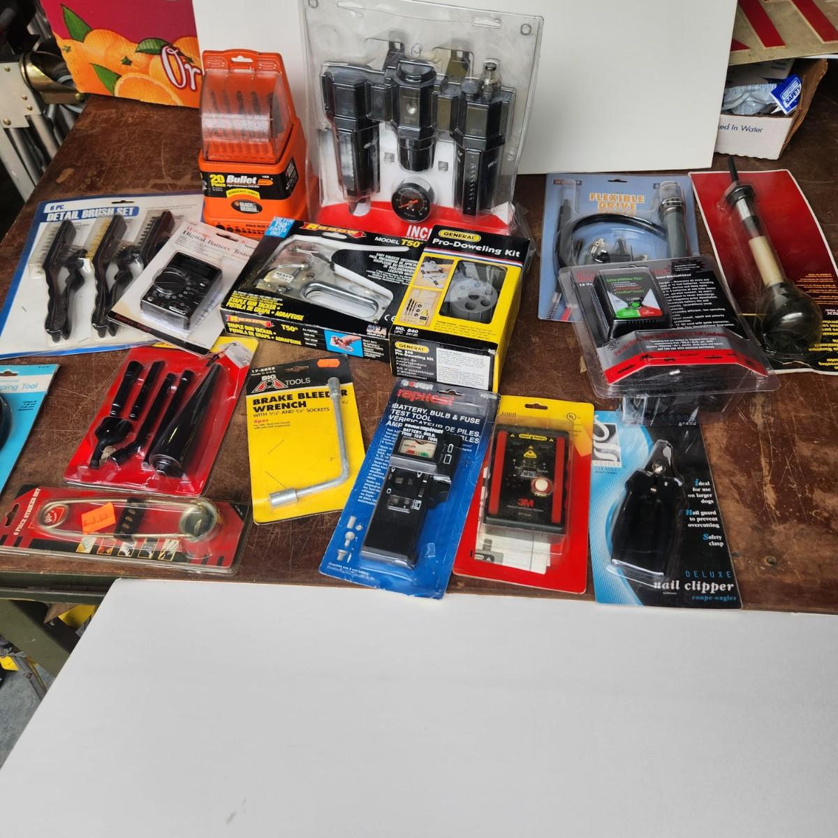 Box lot of New Tools in original package Dowrling Kit, Battery testers , Arrow T50 Stapler Black And Decker Drill Bits Hex Crimping tool
