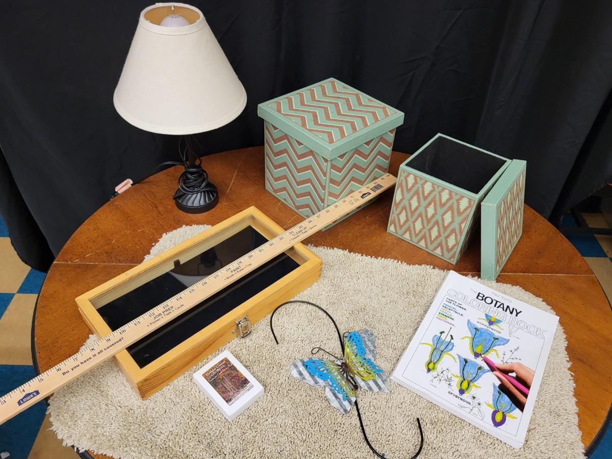 Decor:Box Lot Stacking boxes, shadow box, lamp, rug;