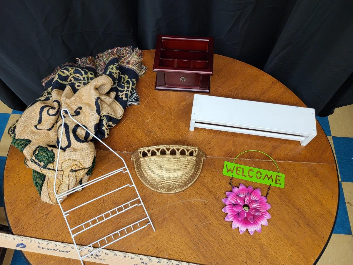 Decor:Box Lot White wall shelf, desk organizer, basket, misc;