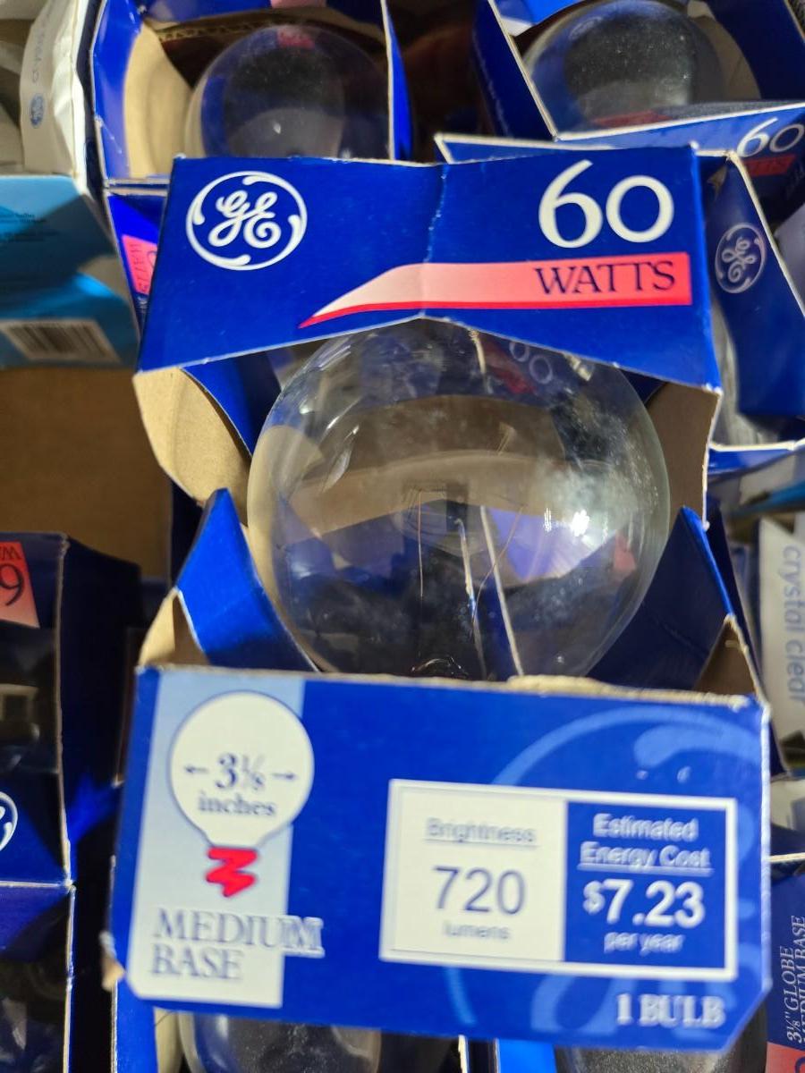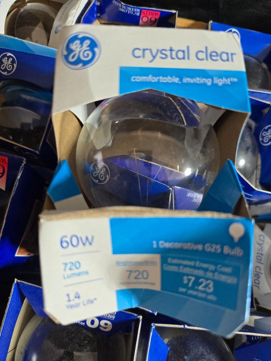 Box of 21 60 watt 3 1/8 globe shaped light bulbs for bathroom vanity