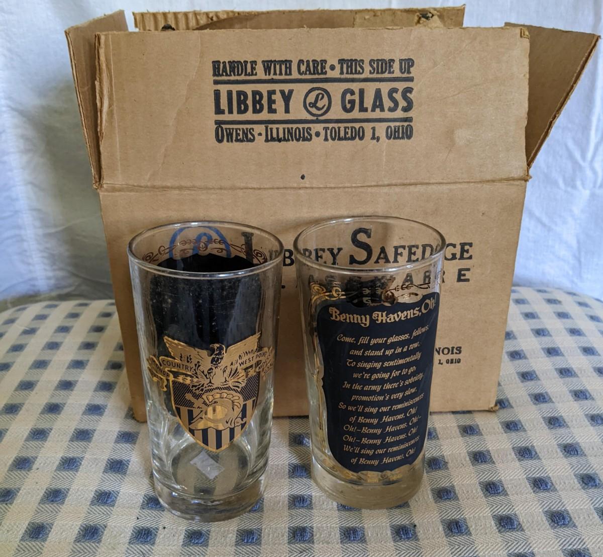 Box of 6 Glasses West Point Benny Havens Oh Vintage Libbey