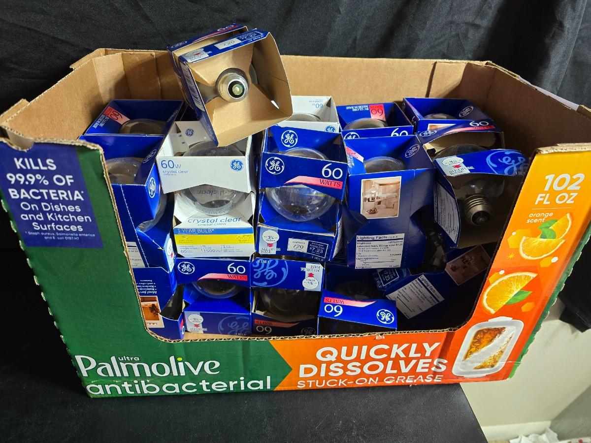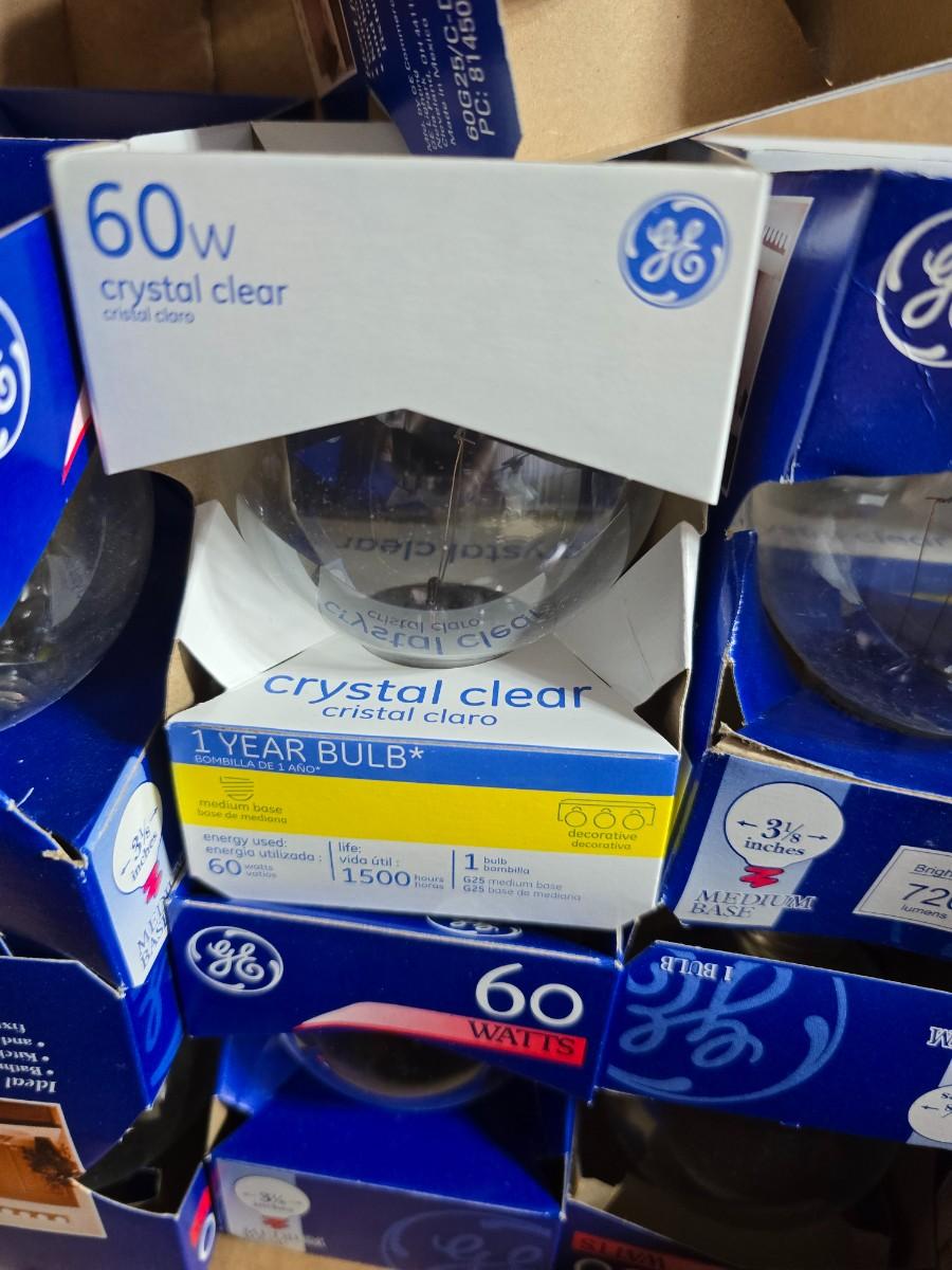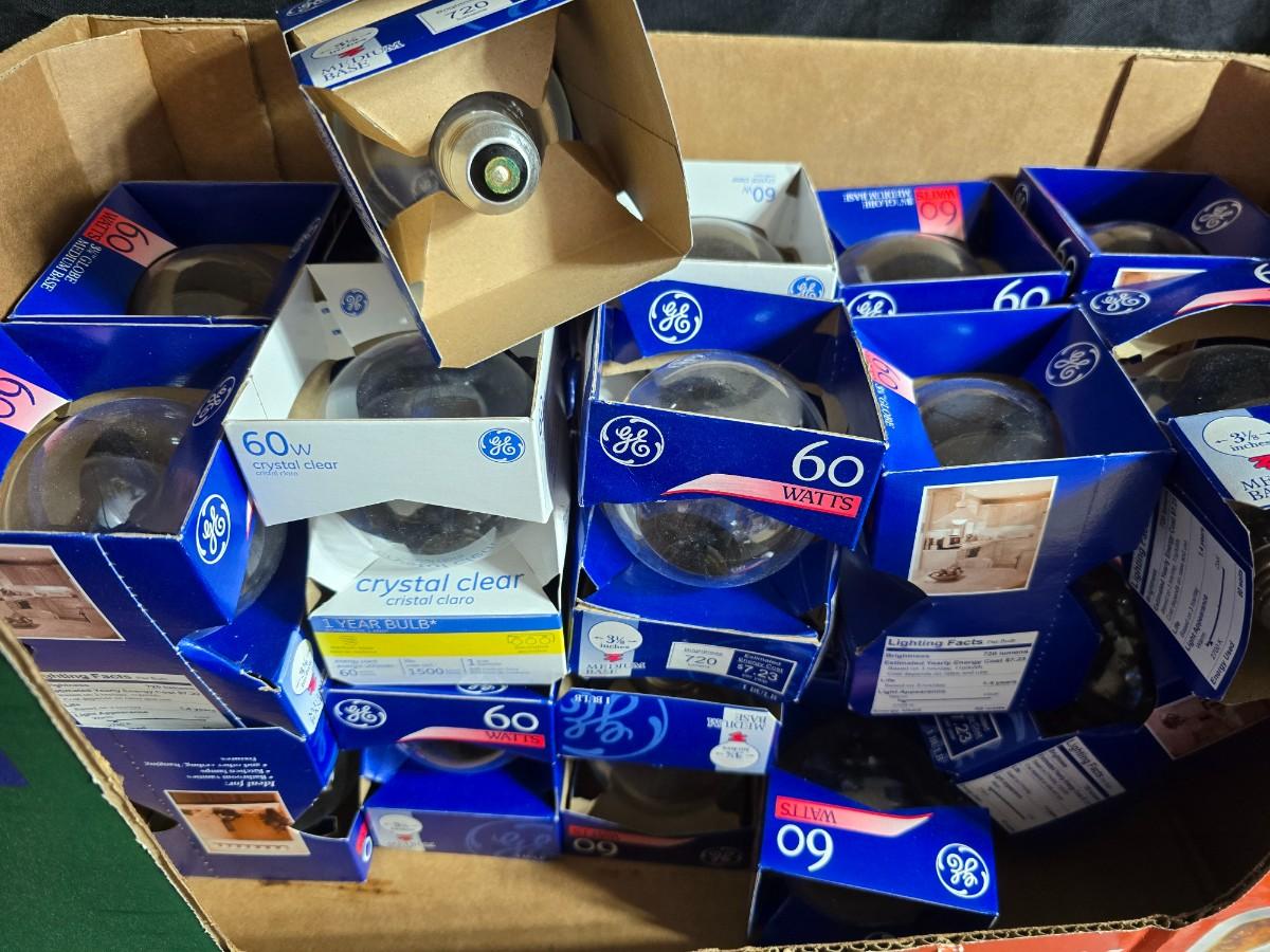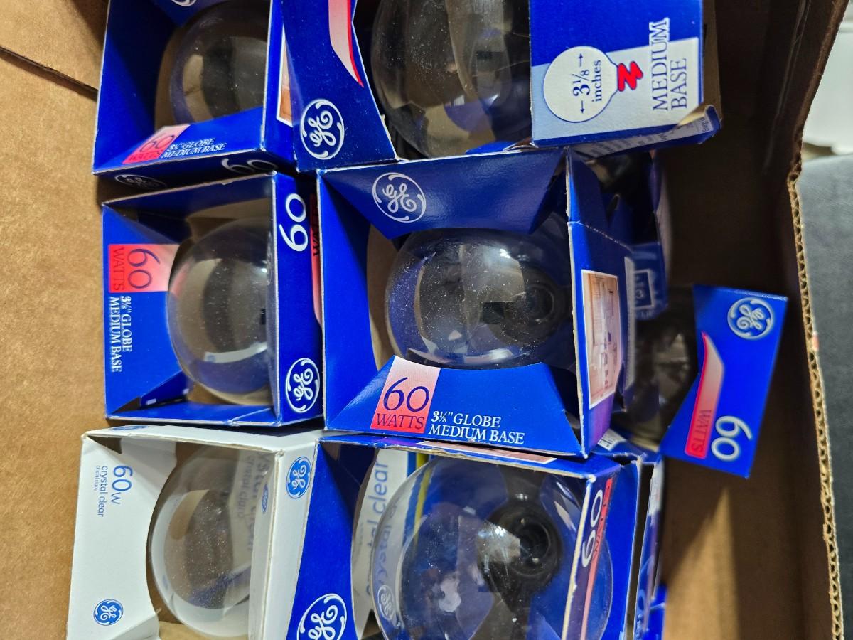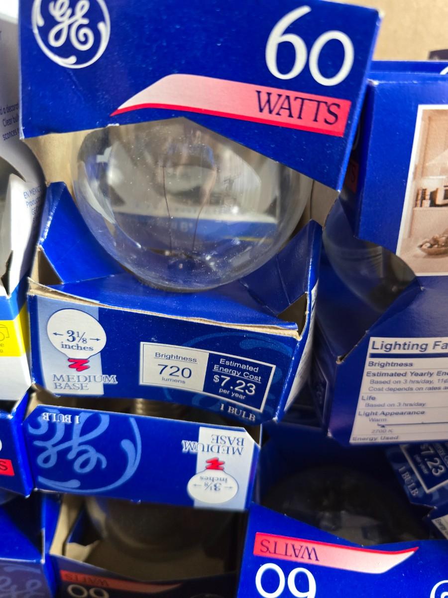 Box of 60 watt 3 1/8 globe shaped light bulbs for bathroom vanity