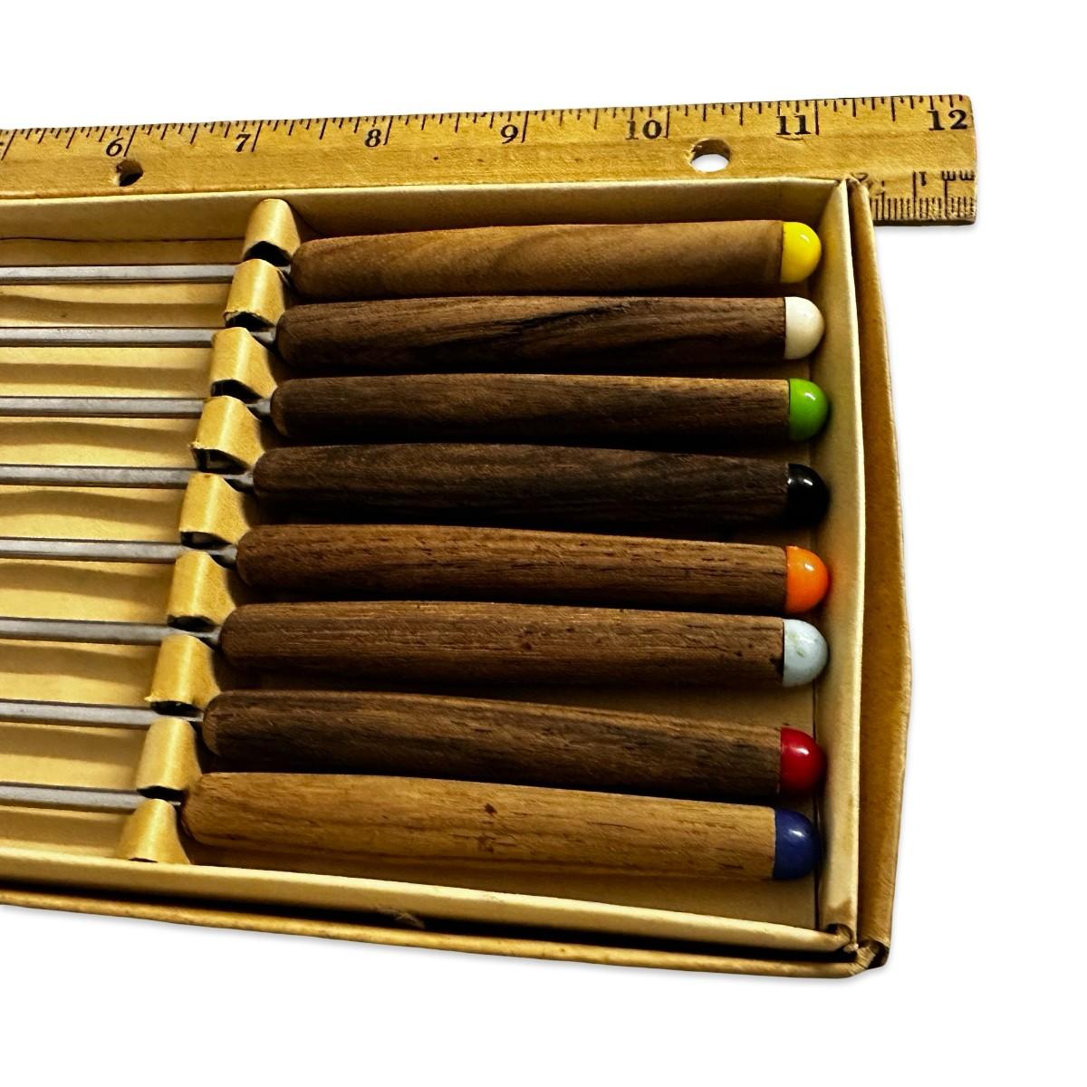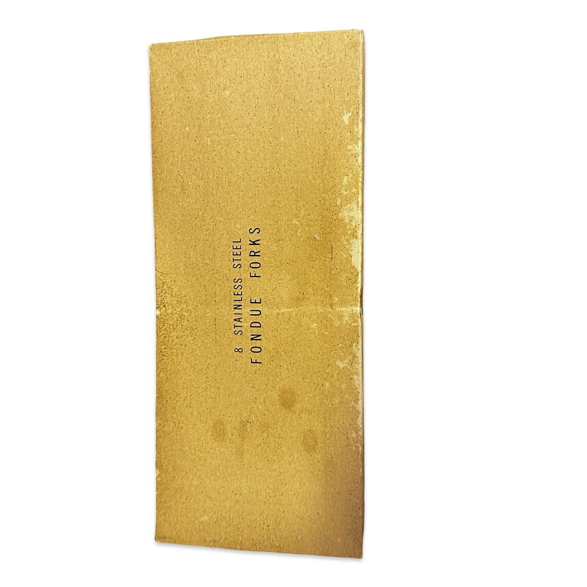 Box of 8 Stainless Steel Vintage Fondue Forks w Colored Tips