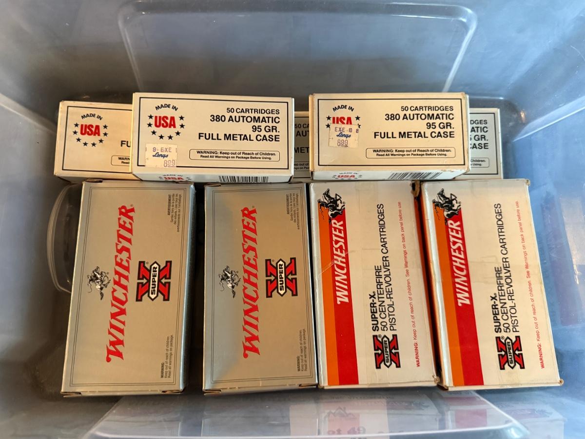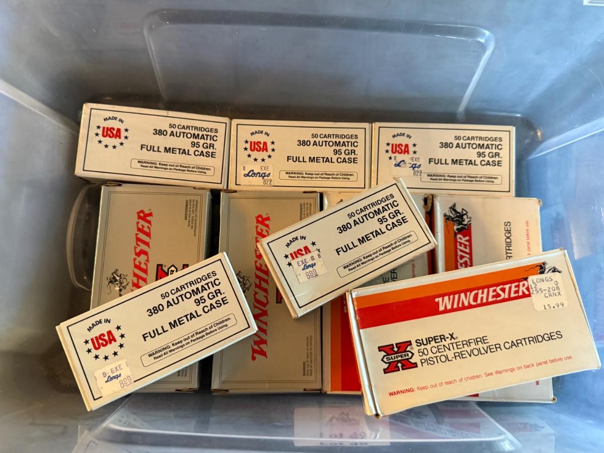 1 missing 13 rounds rest 10 full boxes of 50 per box - 380 Auto Cartridges 95 Grain Full Metal Case Made in the USA as well as some Winchester 2 types as shown