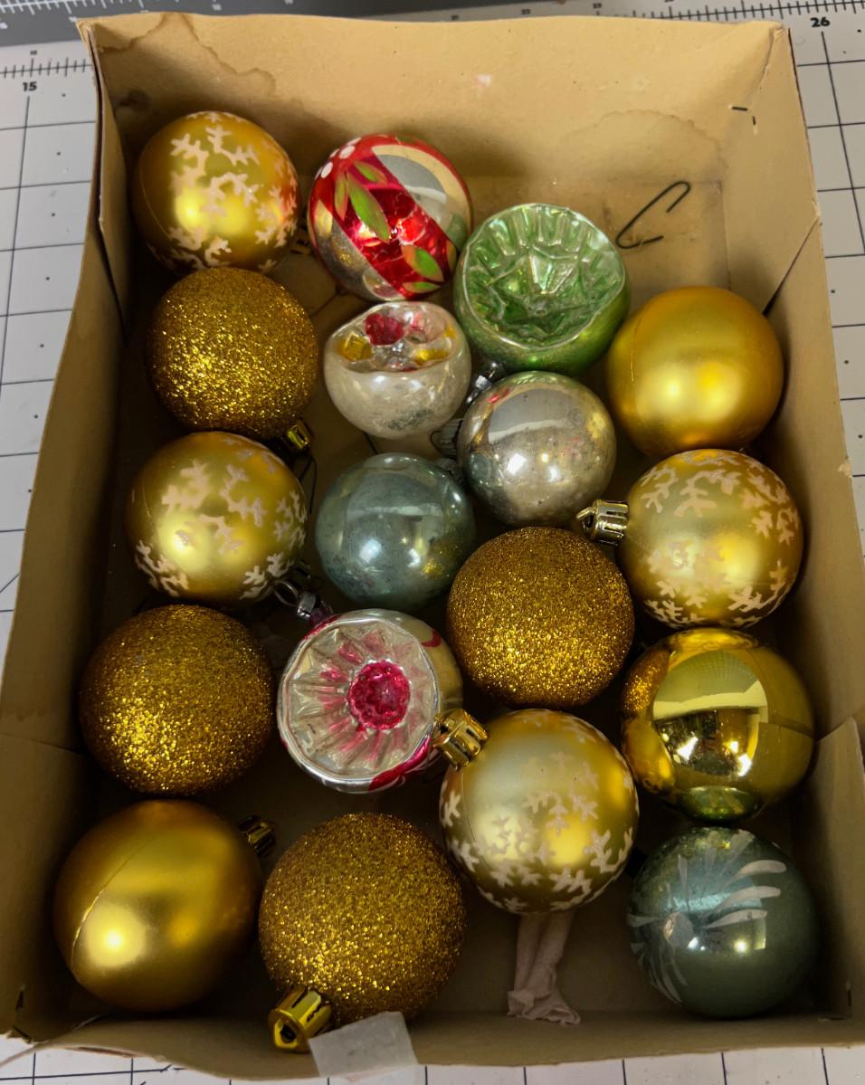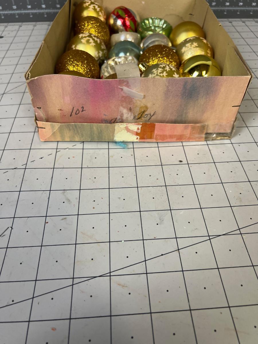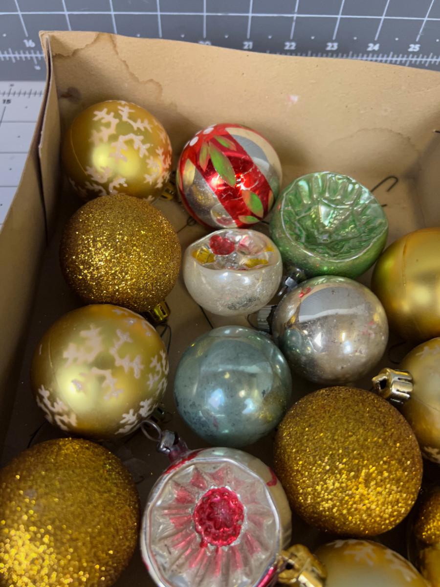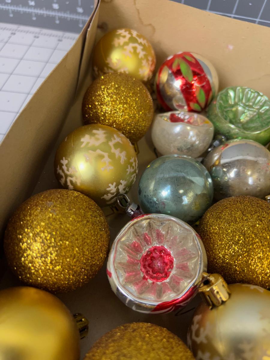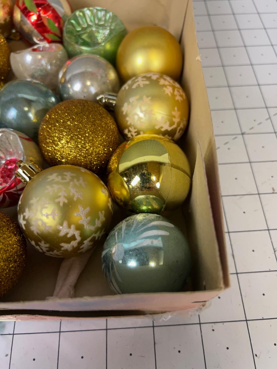 Box of Antique Christmas Ornaments