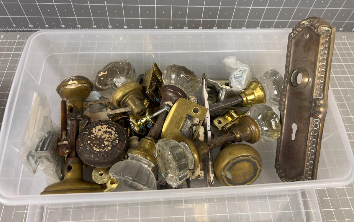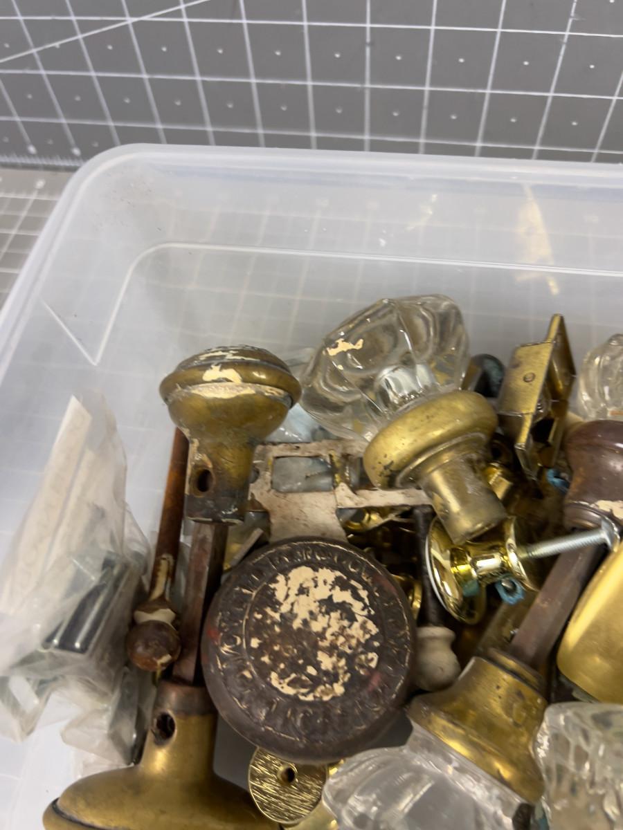 Box of Antique Door Knobs and Hardware