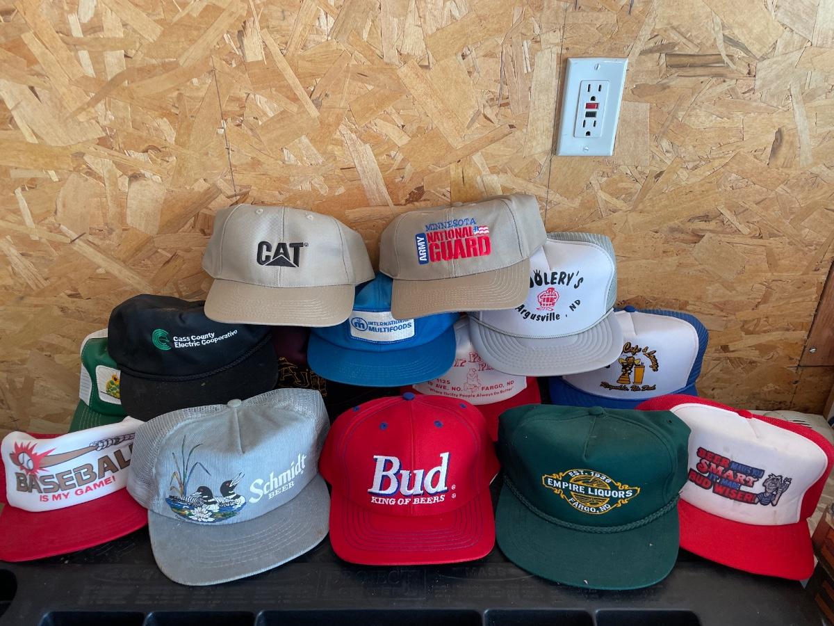 Box of assorted caps. Total of 13 caps in box.
