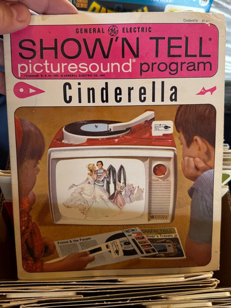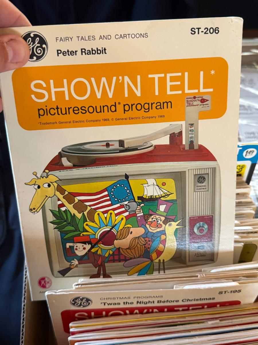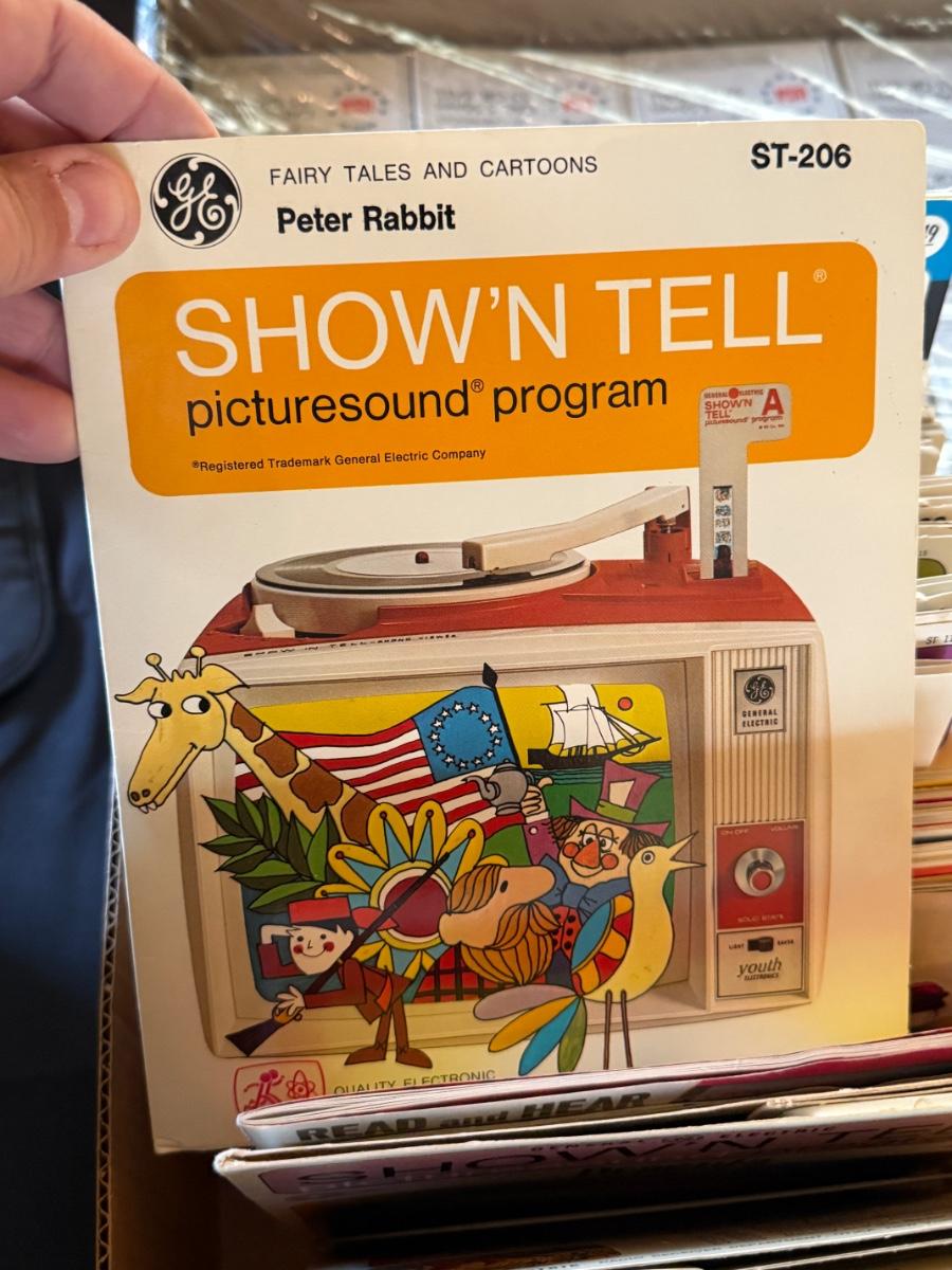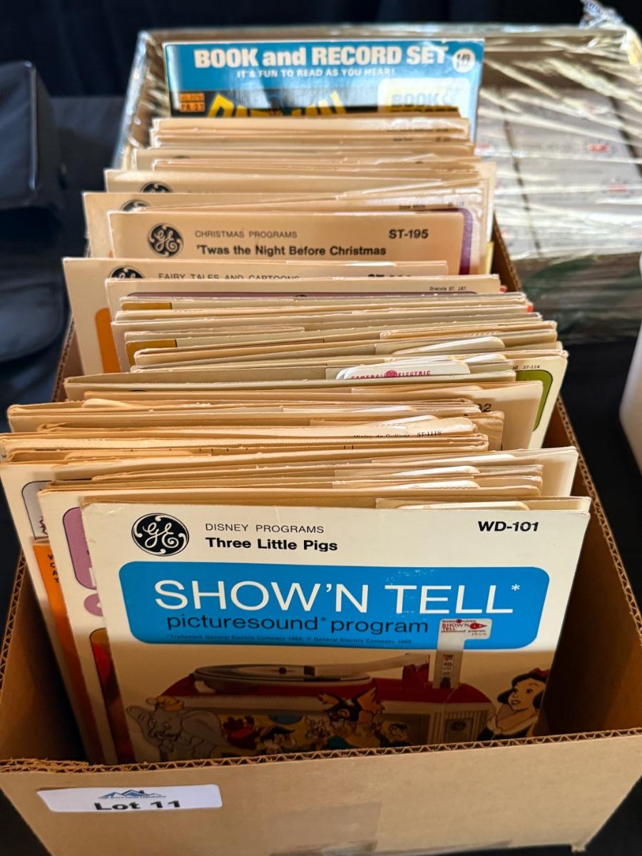 Box of GE Children's "Show'N Tell" picturesound program 45 records/books