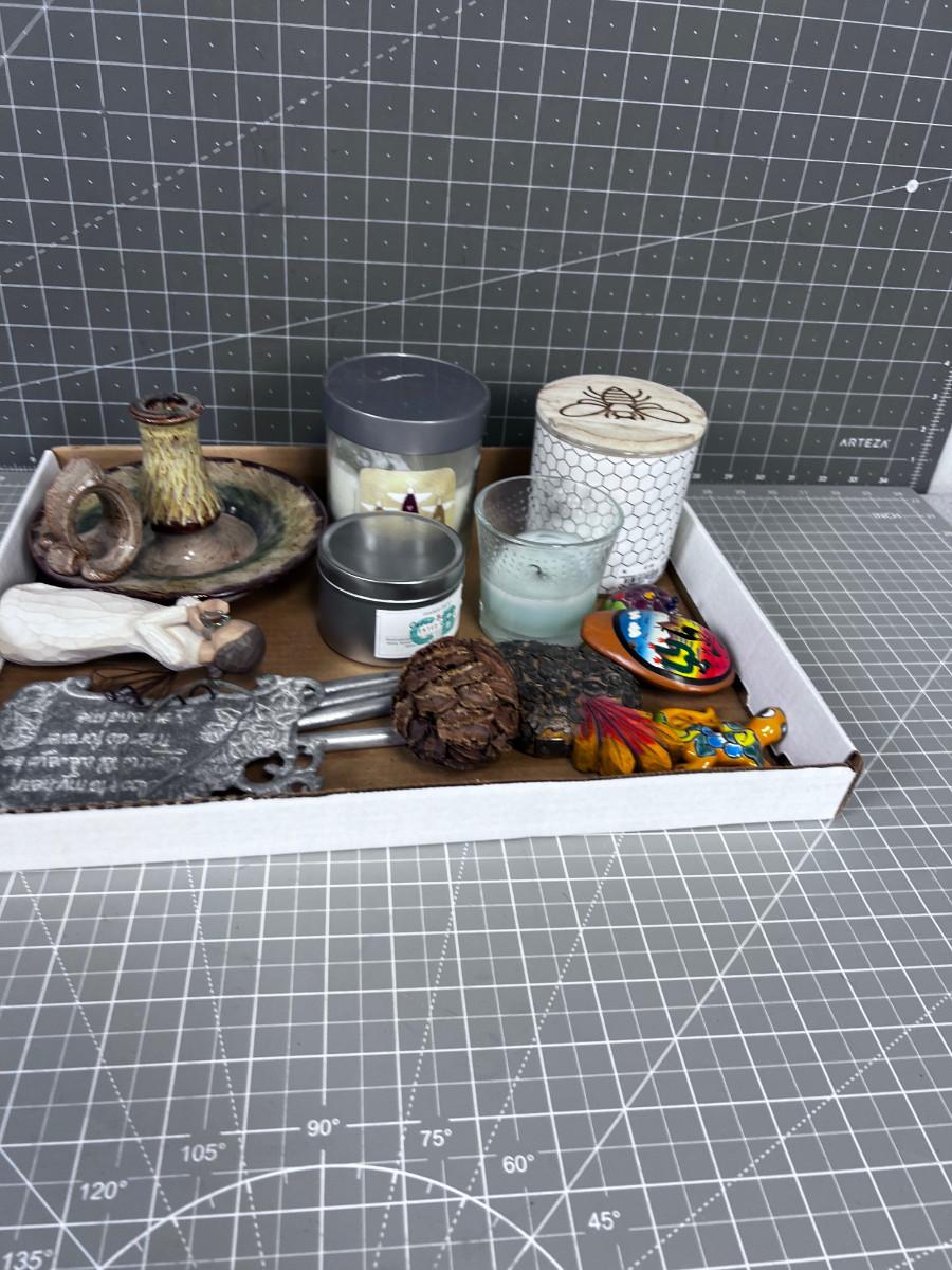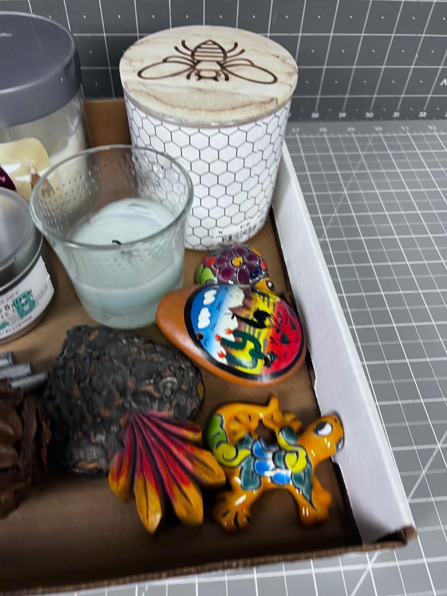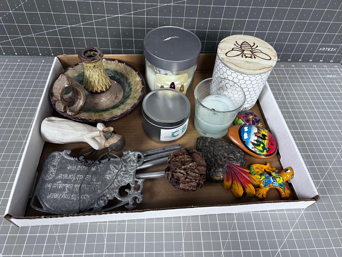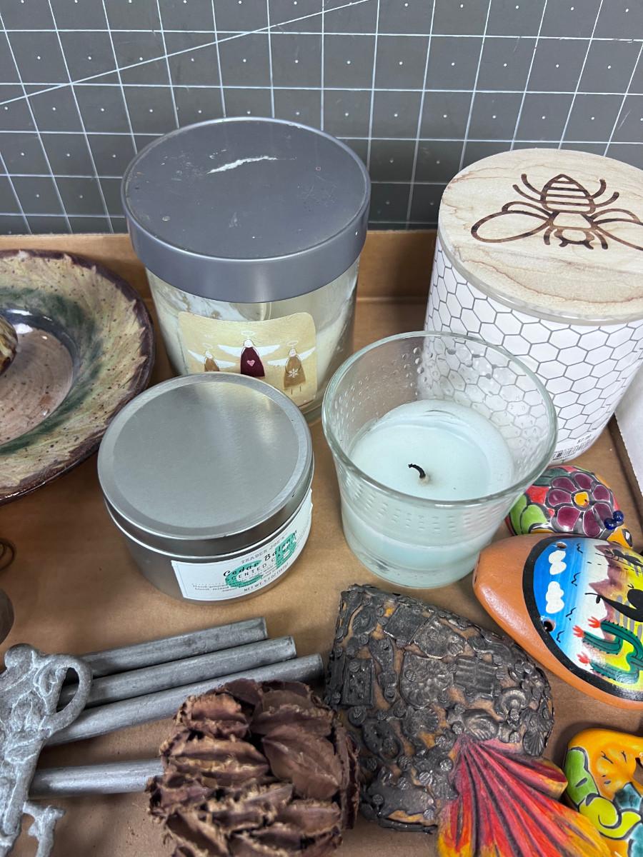 Box of Cool Nick Knack Candles and such