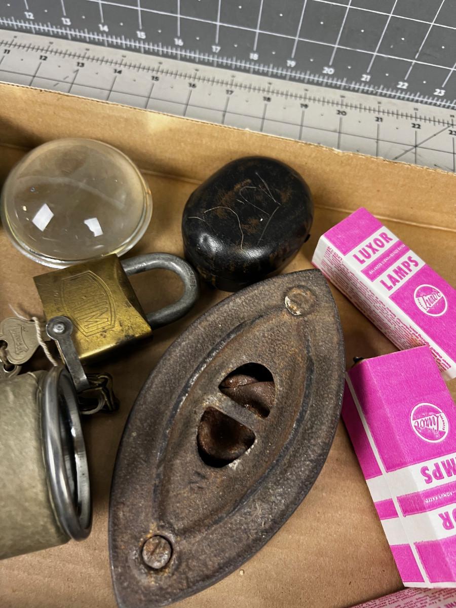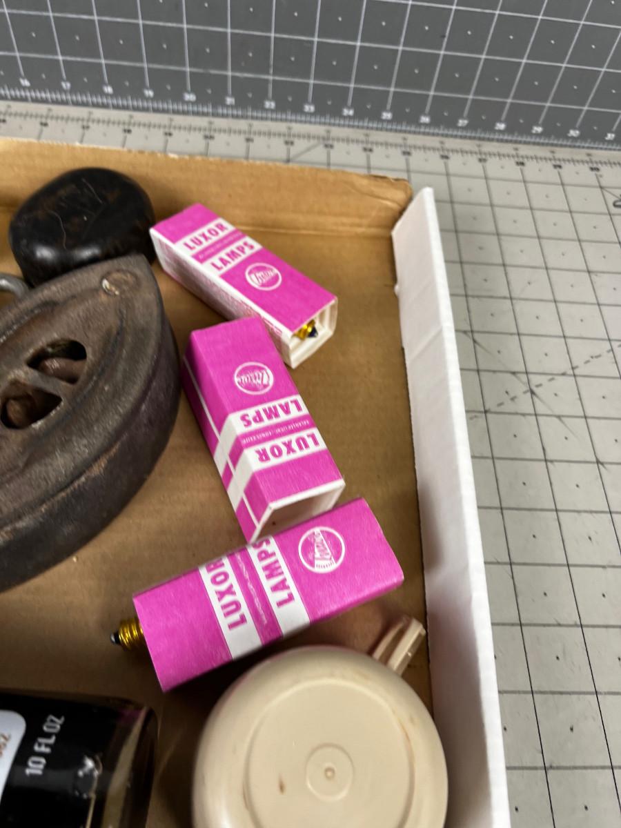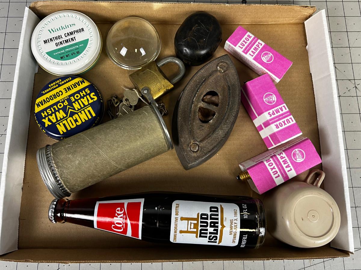 Box of Do Da's: Tins, Irons, Lightbulbs