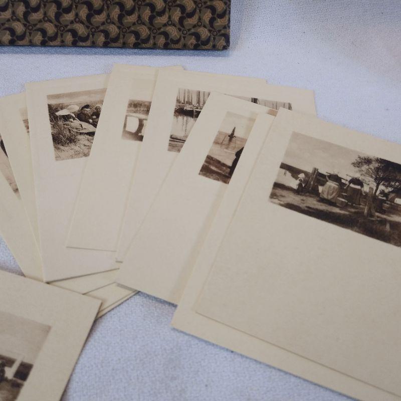 This offering is for a vintage Boxed Set of Dutch Photo Cards. There are 22 different photo-print cards in the box. The two that set on top have darken somewhat but all are clean and perfect to frame or use for whatever purpose. Box size measures 6-inches X 4 1/2-inches. Quite unusual.